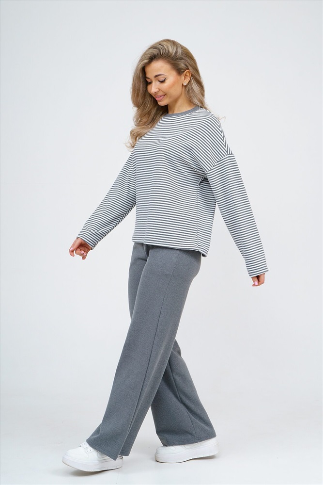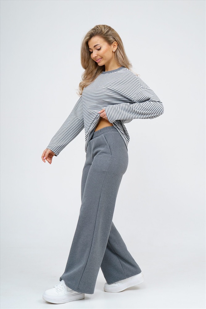ID товара: 1096254 Состав: 95% Полиэстер, 5% Лайкра Сезон: Демисезон Длина: Полная Фасон: Свободный Рукав: длинные Крой брючин: Прямой Рисунок: Полоски Тип карманов: С отрезным бочком Основная ткань: Полиэстер Стиль: повседневный Вид ткани: Флис Страна бренда: Россия Страна производства: Россия Женский костюм выполнен из двухстороннего флис полара высокого качества. Флис полар - высокотехнологичный материал, прошедшей особую обработку. Ткань отличается высокими теплозащитными свойствами, при этом является дышащей. По своим характеристикам она не уступает шерстяным полотнам. И даже в сыром состоянии удерживает тепло у тела. Материал прочный, эластичный, влагостойкий. Воздухопроницаемая гигроскопичная ткань создает для тела комфортный микроклимат. Материал гипоаллергенный, подходит для изготовления одежды детям, в том числе новорожденным. Изделия из флиса легкие, не мнутся, не деформируются, не вытягиваються.В такой одежде удобно и комфортно. Эластичность материала позволяет легко двигаться. Костюм состоит из лонгслива и брюк. Лонг в стиле OVERSIZE ( одежда свободного кроя ) - это свобода самовыражения, позволяющая чувствовать себя комфортно и стильно одновременно. Горловина футболки выполнена с обтачкой. Линия плеча спущена, длинный рукав. Женские стильные брюки - трубы представлены с вместительными боковыми карманами. Пояс выполнен на специализированной круговой поясной машине, что делает швы ровными и качественными. А профессиональные закрепки на поясе, придают изделию законченный вид и качество. Свободный крой прекрасно будет смотреться на дамах с любыми формами. Костюм такого плана представлен в широкой размерной сетке, что позволяет выбрать его как девушке, так и женщине. Костюм модных расцветок с полосой, будет удачным выбором для поездок в отпуск, на пикник, для школы, для активного отдыха и прогулок по городу. Будет гармонично сочетаться как с кроссовками, так и с ботинками. Используя эту модель в качестве домашнего костюма, Вы поймёте, что это именно тот самый идеальный вариант, в котором будете себя чувствовать удобно, комфортно и современно. Костюм с брюками - это настоящая находка для тех, кто ценит свою индивидуальность! Уход: -температура воды не более 40С (лучше 30С); -допустима ручная и автоматическая стирка; -Одежду не выкручивают, а развешивают на плечики, давая воде стечь. -сушка в стиральной машине недопустима; Ориентируясь по таблице замеров, обратите внимание, что замеры длины рукава проводились от точки основания шеи. Комментарии к товару