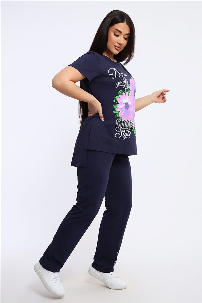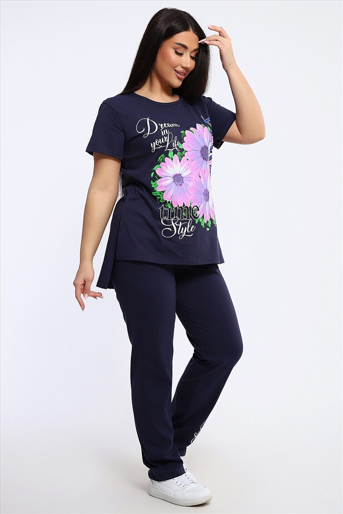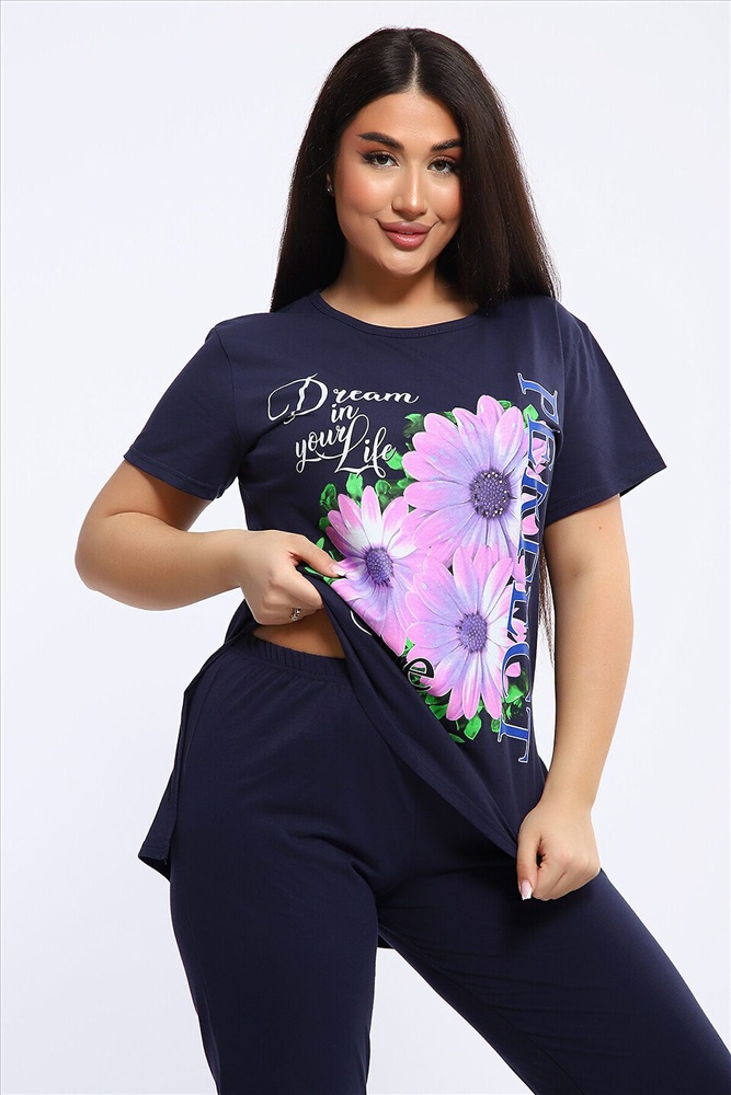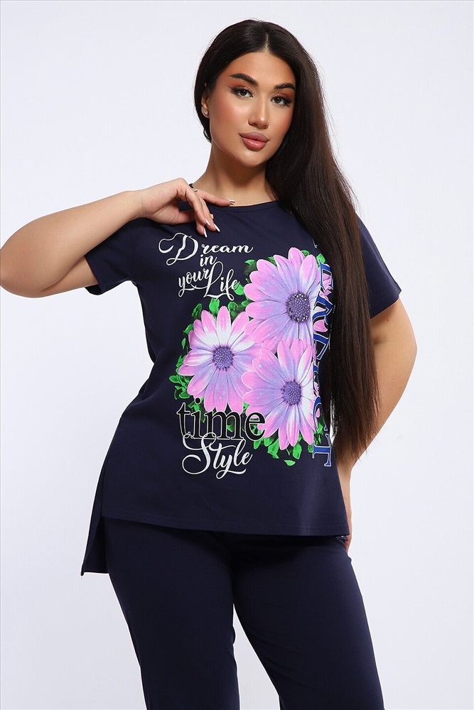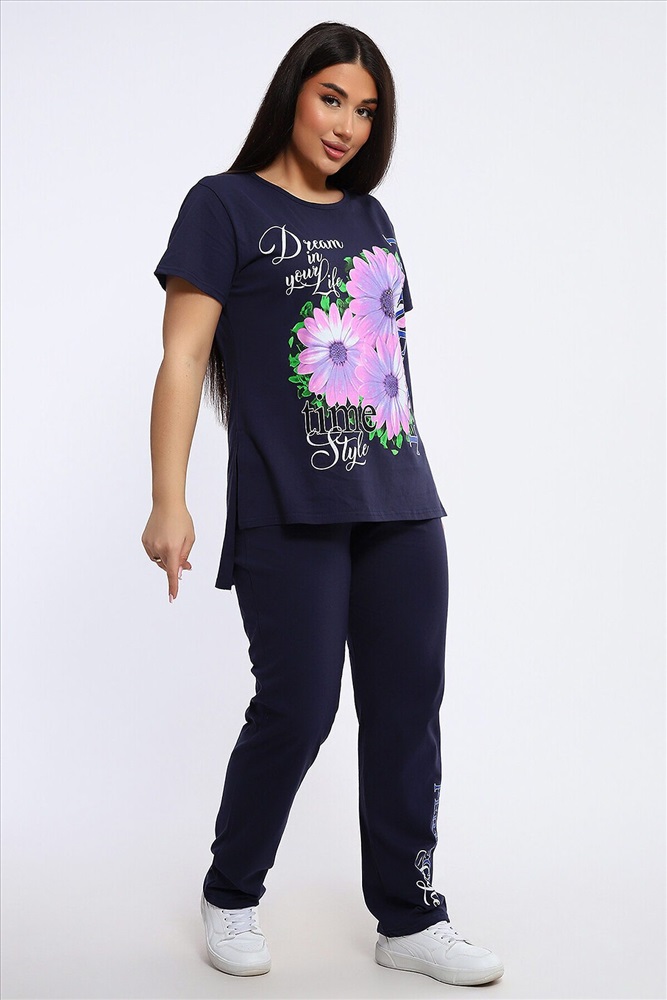 ID товара: 1112262 Состав: Хлопок 100% Сезон: Весна/Лето Длина: Полная Фасон: Прямой Рукав: короткие Крой брючин: Прямой Рисунок: цветочный Декоративные элементы: Принт Основная ткань: Хлопок Стиль: повседневный Вид ткани: Кулирка Страна бренда: Россия Страна производства: Россия Посмотрите какая нежность. Женский костюм с брюками включает в себя стильный верх - футболку с удлиненной спинкой и двумя боковыми разрезами, украшенную красивым цветочным принтом. Брюки в комплекте длинные и свободные, также имеют оригинальный принт с надписями в нижней части. Особенности: Состав: 100% хлопок Высококачественное сырье и пошив Принт, который не сотрется (при бережном уходе). Этот костюм идеально подходит для повседневной носки, а также для встреч с друзьями или прогулок по городу, одевайте эту нежность дома. Комфорт и стиль в одном наборе! Комментарии к товару