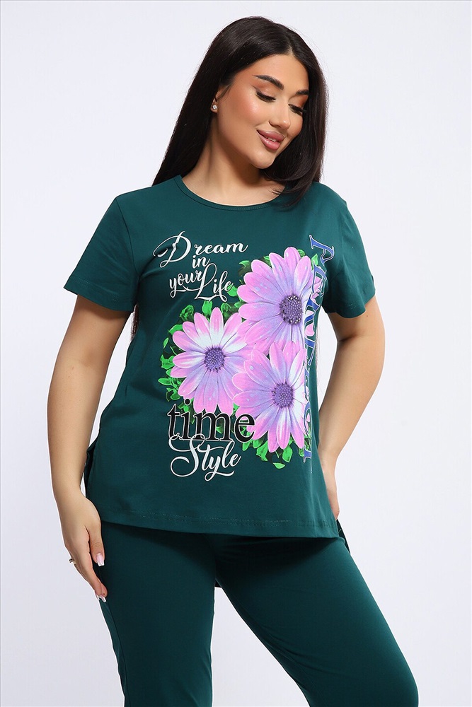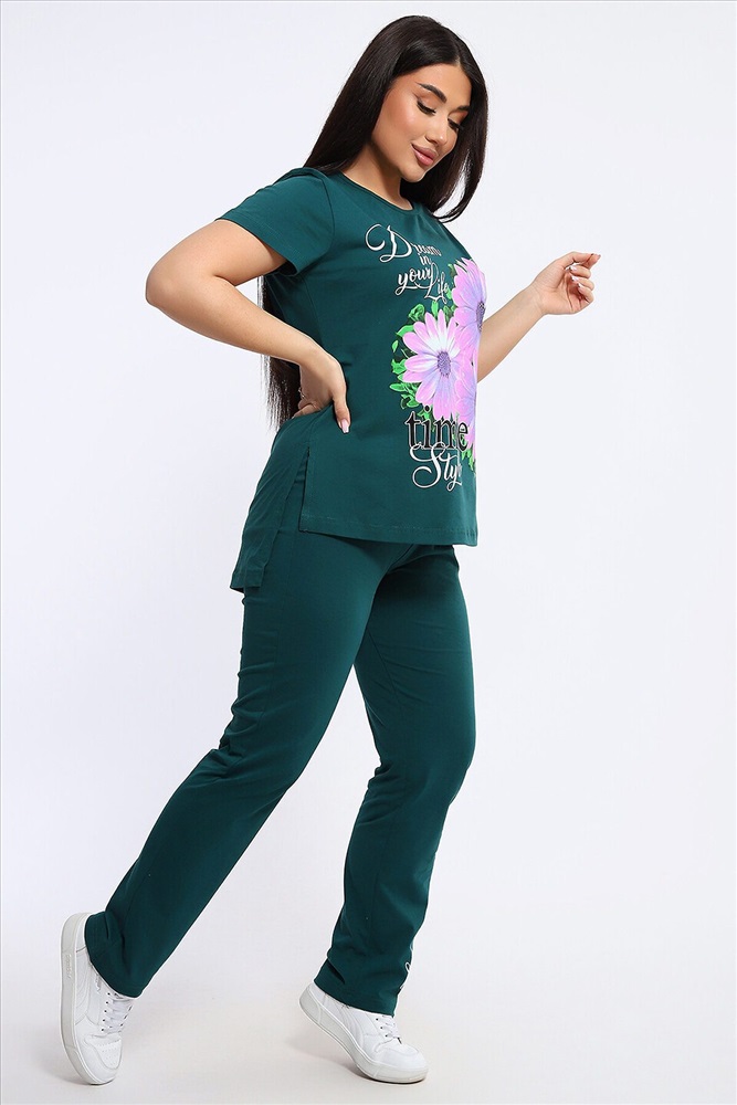 ID товара: 1113070 Состав: Хлопок 100% Сезон: Весна/Лето Длина: Средняя Фасон: Повседневный Рукав: короткие Крой брючин: Прямой Рисунок: цветочный Основная ткань: Хлопок Стиль: Повседневный Вид ткани: Кулирка Страна бренда: Россия Страна производства: Россия Посмотрите какая нежность. Женский костюм с брюками включает в себя стильный верх - футболку с удлиненной спинкой и двумя боковыми разрезами, украшенную красивым цветочным принтом. Брюки в комплекте длинные и свободные, также имеют оригинальный принт с надписями в нижней части. Особенности: Состав: 100% хлопок Высококачественное сырье и пошив Принт, который не сотрется (при бережном уходе). Этот костюм идеально подходит для повседневной носки, а также для встреч с друзьями или прогулок по городу, одевайте эту нежность дома. Комфорт и стиль в одном наборе! Комментарии к товару