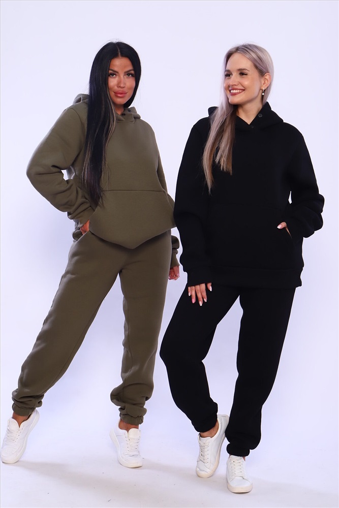 ID товара: 928774 Состав: 65% Хлопок; 35% Полиэстер Сезон: Весна/Лето Длина: Средняя Фасон: Свободный крой Рукав: длинные Крой брючин: Зауженный Тип карманов: Кенгуру Основная ткань: Хлопок Стиль: Спортивный Вид ткани: Футер 3-х нитка с начесом Страна бренда: Россия Страна производства: Россия Универсальный женский костюм из футера с начесом является настоящей находкой для любительниц комфорта и стиля. Костюм представлен в модном oversize покрое, что идеально для женщин больших размеров и тех, кто любит просторную одежду. Невероятно мягкий и теплый футер создан на 65% из хлопка, что делает его еще более комфортным и долговечным. Костюм состоит из уютного худи и брюк на резинке, которые великолепно садятся по фигуре, не стесняя движений. Костюм прекрасно подходит как для домашних посиделок, так и для активных занятий на свежем воздухе. Не упустите возможность дополнить свой гардероб этим прекрасным комплектом! Комментарии к товару
