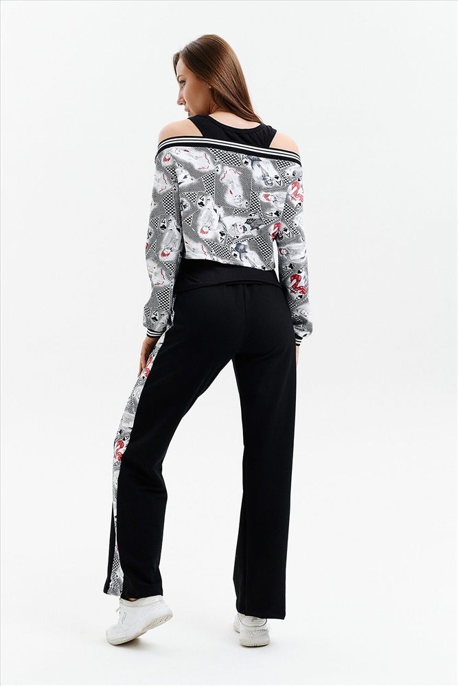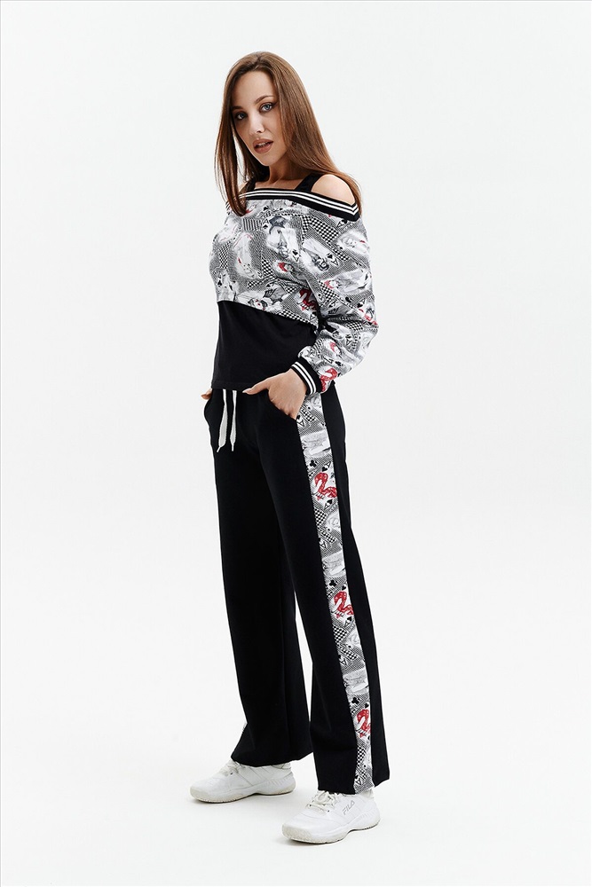 ID товара: 872567 Состав: Хлопок 72%, Полиэстер 20%, Эластан 8%, Хлопок 95%, Лайкра 5% Сезон: Демисезон Длина: Средняя Фасон: Прямой Рукав: длинные Крой брючин: Прямой Основная ткань: Футер с лайкрой 2-х нитка, кулирка с лайкрой Стиль: Повседневный Страна бренда: Россия Страна производства: Россия Костюм женский - тройка, состоит из майки прилегающего силуэта, широких, прямых брюк с цветной вставкой по бокам и короткого свитшота свободного силуэта со спущенной линией плеч. Оригинальный, модный костюм, который подойдет для прогулок, встреч с друзьями, активного отдыха и путешествий. Комментарии к товару