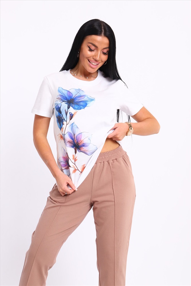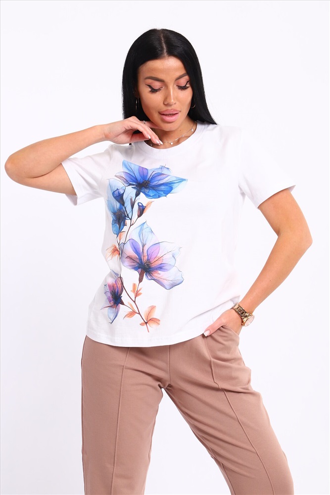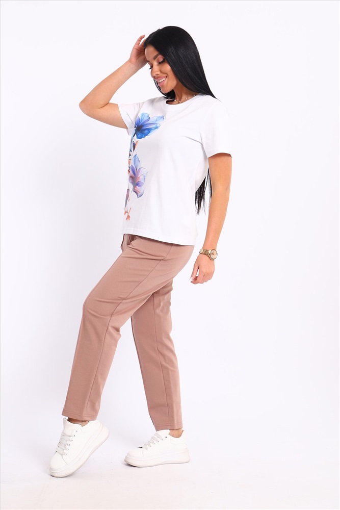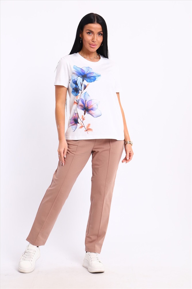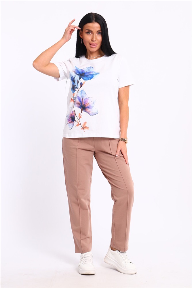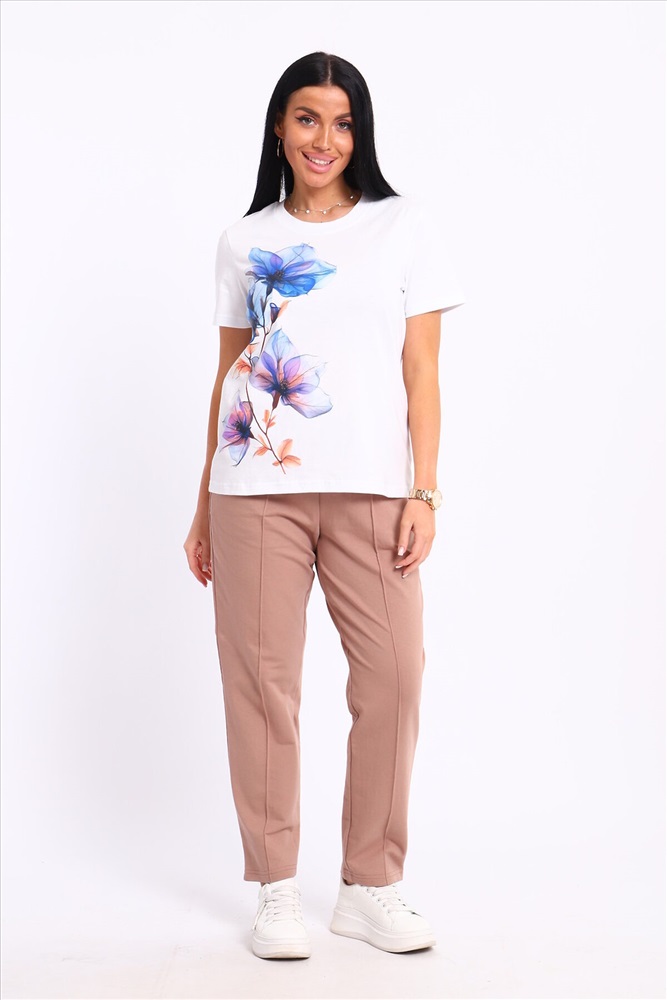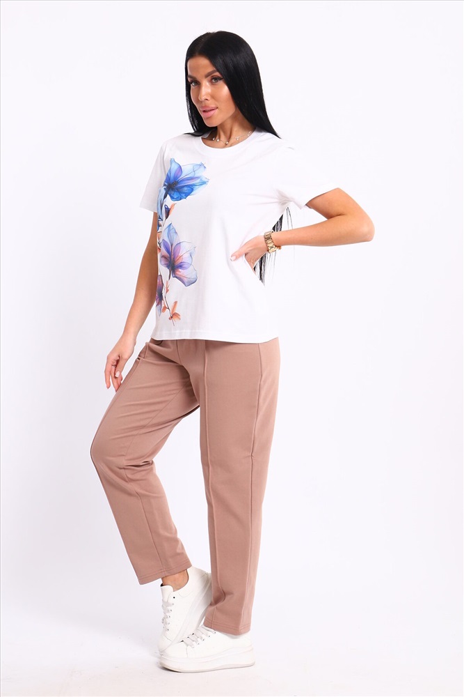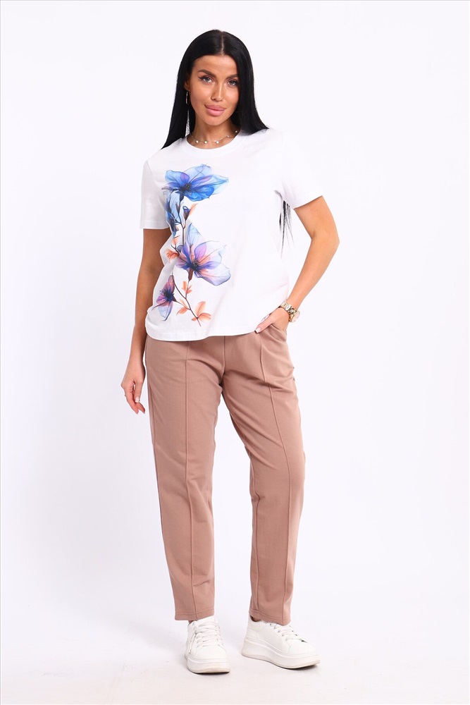 ID товара: 1094125 Состав: 74% Хлопок, 21% Полиэстер, 5% Лайкра; 100% Хлопок Сезон: Весна/Лето Длина: Полная Фасон: Прямой Рукав: короткие Крой брючин: Прямой Рисунок: цветочный Тип карманов: С отрезным бочком Декоративные элементы: Принт Основная ткань: Хлопок Стиль: повседневный Вид ткани: Кулирка пенье, футер 2-х нитка Страна бренда: Россия Страна производства: Россия Представляем вашему вниманию современный костюм, состоящий из брюк и футболки. Брюки классические с отстроченной стрелкой спереди, двумя карманами, пояс на резинке. Футболка свободного кроя, с принтом. Костюм обладает отменными практическими характеристиками, и на долгое время сохранит свой первоначальный вид. Комментарии к товару