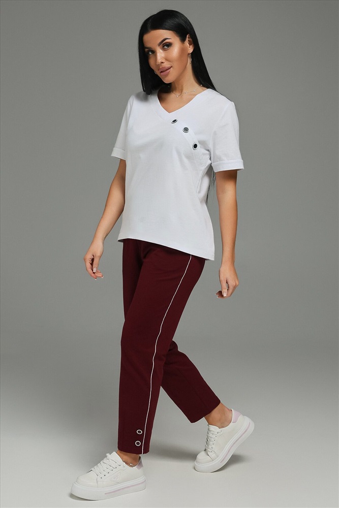 ID товара: 1098815 Состав: 74% Хлопок, 21% Полиэстер, 5% Лайкра; 100% Хлопок Сезон: Весна/Лето Длина: Полная Фасон: Прямой Рукав: короткие Крой брючин: Прямой Тип карманов: С отрезным бочком Декоративные элементы: Пуговицы Основная ткань: Хлопок Стиль: повседневный Вид ткани: Кулирка пенье, футер 2-х нитка Страна бренда: Россия Страна производства: Россия Брючный трикотажный костюм - это стильный и элегантный предмет гардероба, идеально подходит для дома и отдыха на любой период: весенний, осенний, летний и зимний. Костюм состоит из брюк и футболки, выполненный из высококачественного трикотажного материала. На карманах и по низу брюк декор дополнен декоративными пуговицами, как и на обтачке по фигурной планке. Изысканный комплект является идеальным выбором для всех, кто ценит качество и элегантность. Комментарии к товару