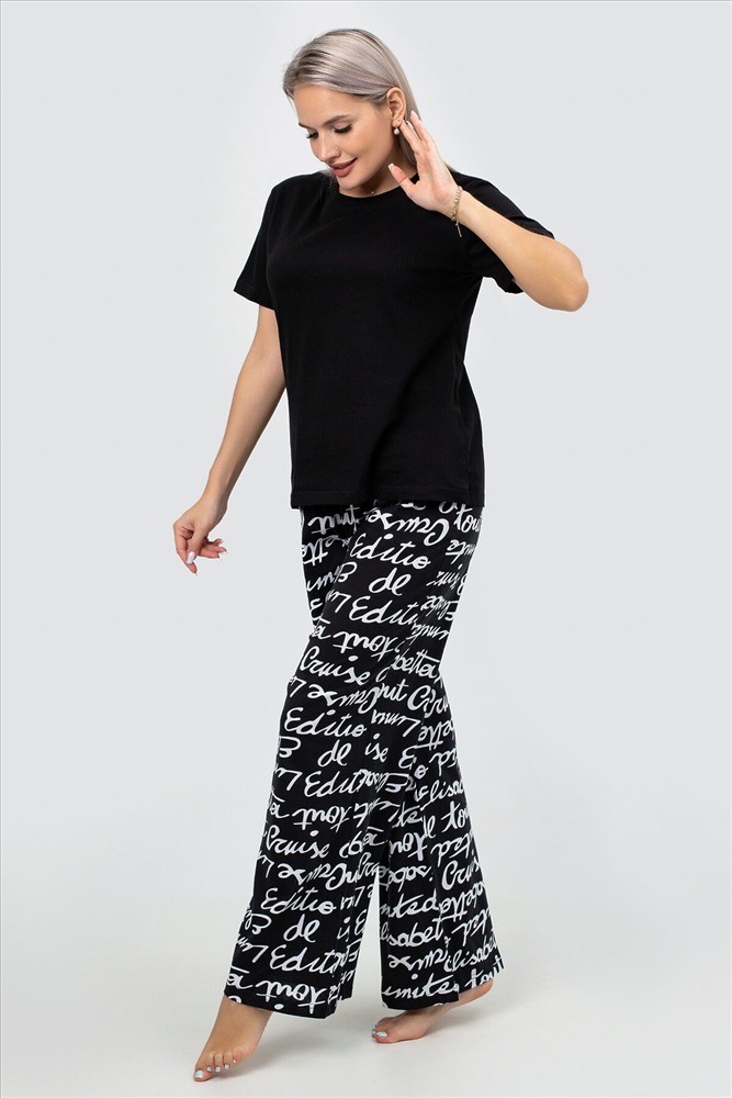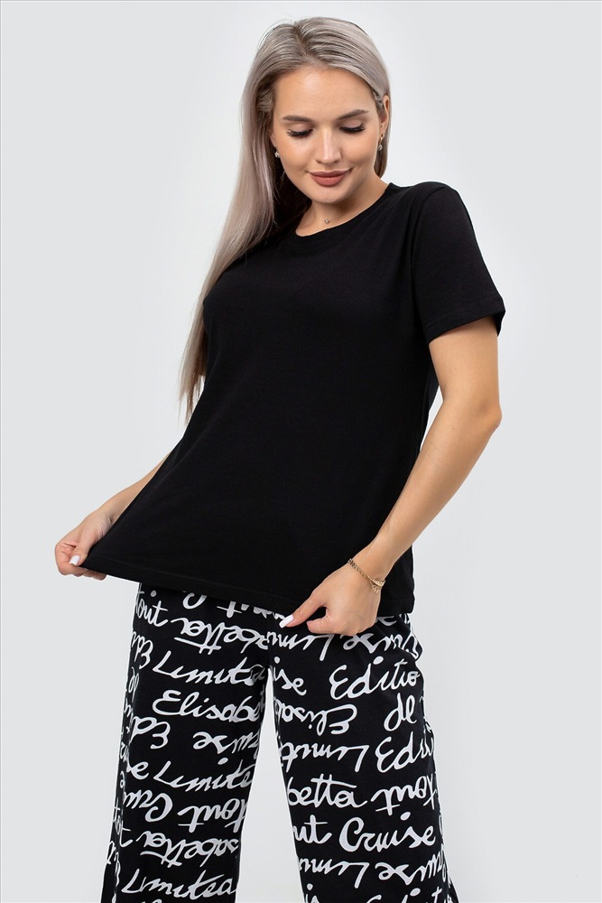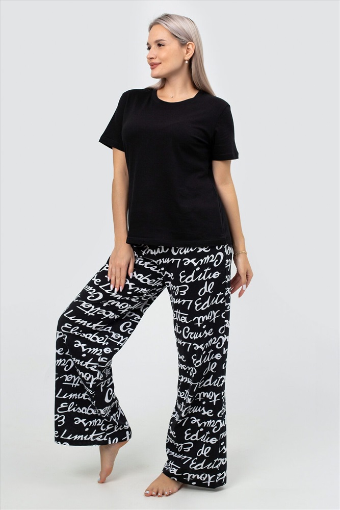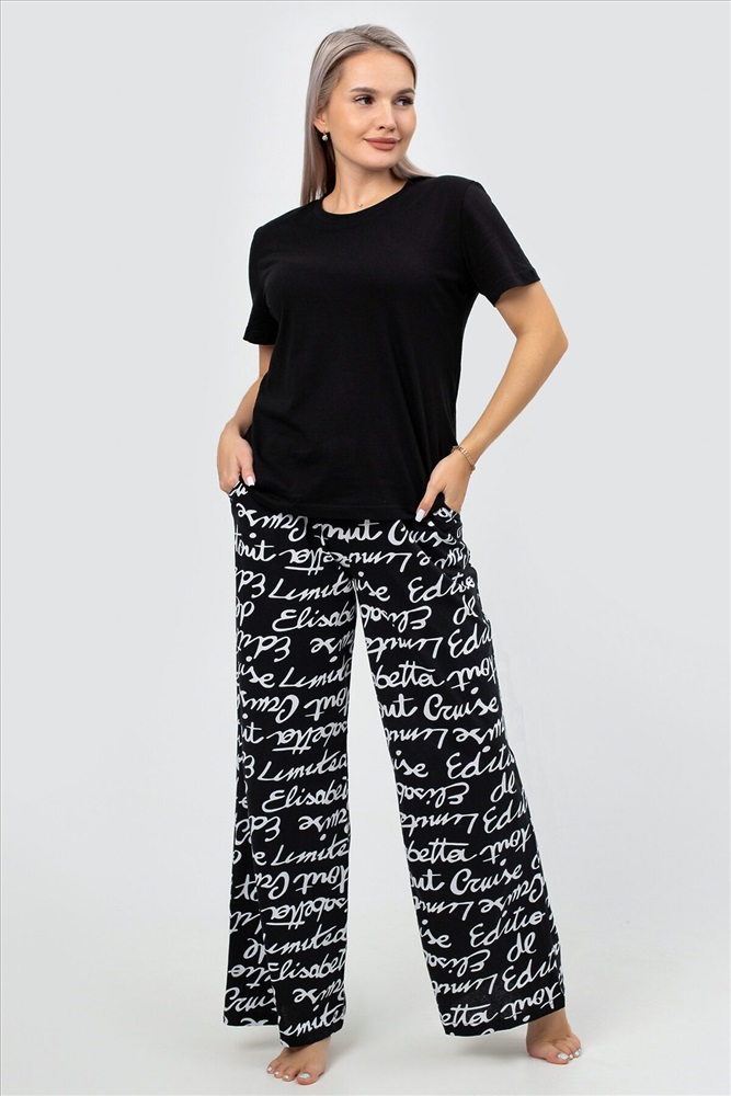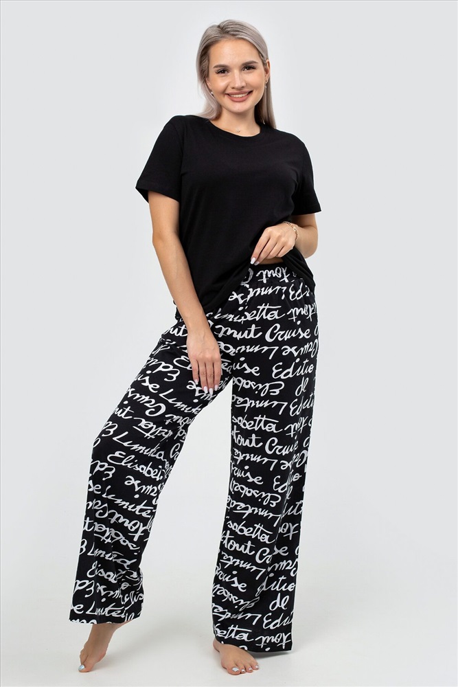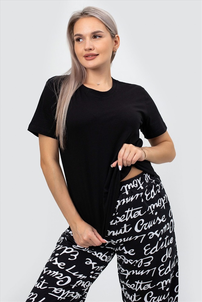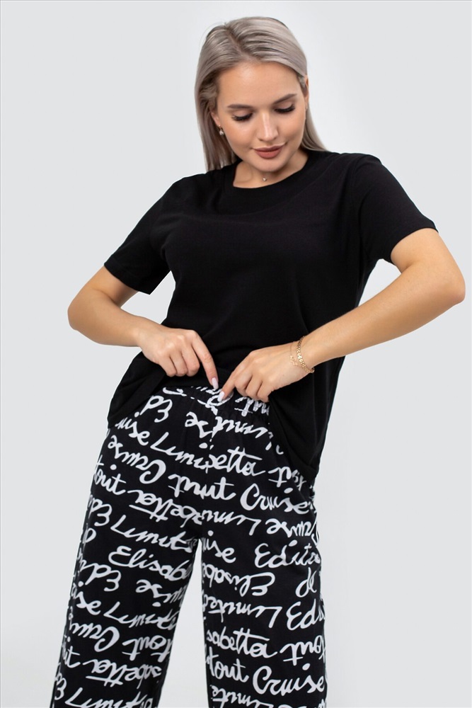Страна производства: Россия Идеальная женская пижама для весеннего и летнего сезона! Этот стильный и комфортный костюм двойка станет незаменимым элементом вашего домашнего гардероба. Брюки палаццо и однотонная футболка с коротким рукавом входят в комплект. Прямой крой и свободный фасон обеспечивают максимальный комфорт и свободу движений, что делает эту пижаму идеальной для сна, отдыха и повседневного ношения дома. Штаны с прорезными карманами на резинке идеально подходят для женщин и девушек любого роста и комплекции, включая полных и беременных. Они обеспечивают удобную посадку и не стесняют движений, что особенно важно для будущих мам. Принт с надписями добавляет пижаме стильный и нарядный вид, делая её подходящей даже для новогодних праздников. Футболка с коротким рукавом и прямым кроем выполнена из мягкого трикотажа, который приятно прилегает к телу и не вызывает раздражения. Однотонный дизайн позволяет легко сочетать её с другими элементами вашего гардероба, создавая базовые и стильные образы для дома. Костюм двойка оверсайз станет отличным выбором для женщин и девушек, которые ценят комфорт и стиль. Этот брючный костюм создан для тех, кто хочет чувствовать себя уютно и уверенно в любой ситуации. Наша женская пижама со штанами это не просто домашняя одежда, а настоящий символ уюта и комфорта. Станет отличным подарком для ваших близких на любой праздник, будь то Новый год или день рождения. Подарите себе и своим близким тепло и заботу с нашей стильной и красивой пижамой! Не упустите возможность приобрести эту уникальную пижаму, которая сочетает в себе все лучшие качества. Она станет вашим любимым элементом гардероба для дома и отдыха, обеспечивая уют в весенние и летние дни.