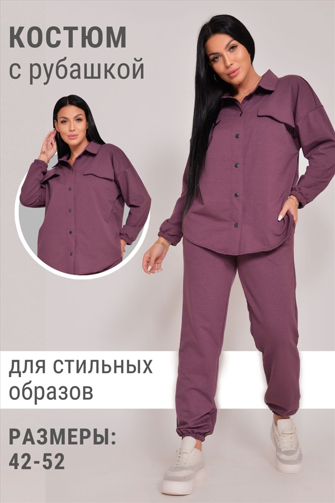 ID товара: 874646 Состав: Хлопок 92%, Лайкра 8% Сезон: Демисезон Длина: Средняя Фасон: Прямой Рукав: Длинные Вид застежки: Кнопки Крой брючин: Прямой Основная ткань: Футер с лайкрой 2-х нитка Стиль: Повседневный Страна бренда: Россия Страна производства: Россия Стильный женский костюм. Рубашка на клепках и джоггеры на резинке. Костюм изготовлен из качественного футера 2-х нитки, ткань приятная к телу и практичная в носке. Незаменимая вещь в гардеробе каждой модницы! Удобный крой, модель оверсайз, благодаря чему костюм совершенно не сковывая движения. Костюм можно приобрести для себя, но также он будет отличным подарком для подруги или мамы. Стань самой модной и привлекательной в современном образе от бренда Ландыш Комментарии к товару