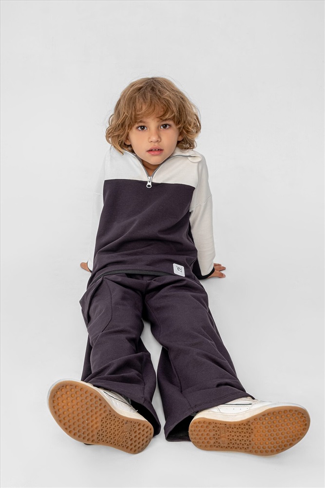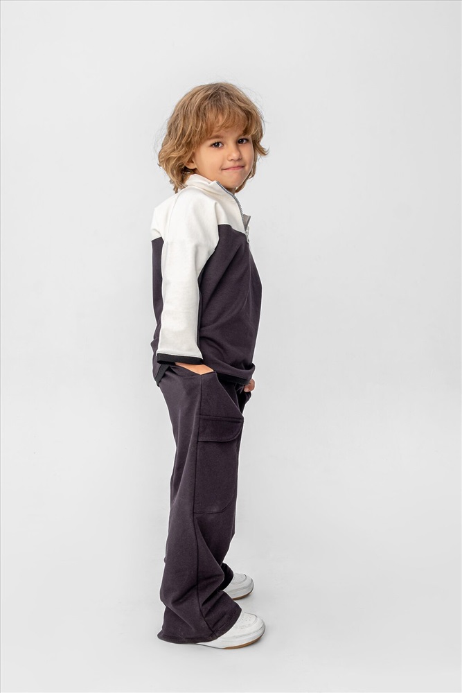Костюм из футера двунитки. Свитшот и брюки. Свитшот дополнен нашитыми световозвращающими элементами. Брюки прямого кроя с боковыми карманами и накладным карманом на брючине. Легко стирается, не образует катышков, не линяет. Состав 90%хб, 10% п\э