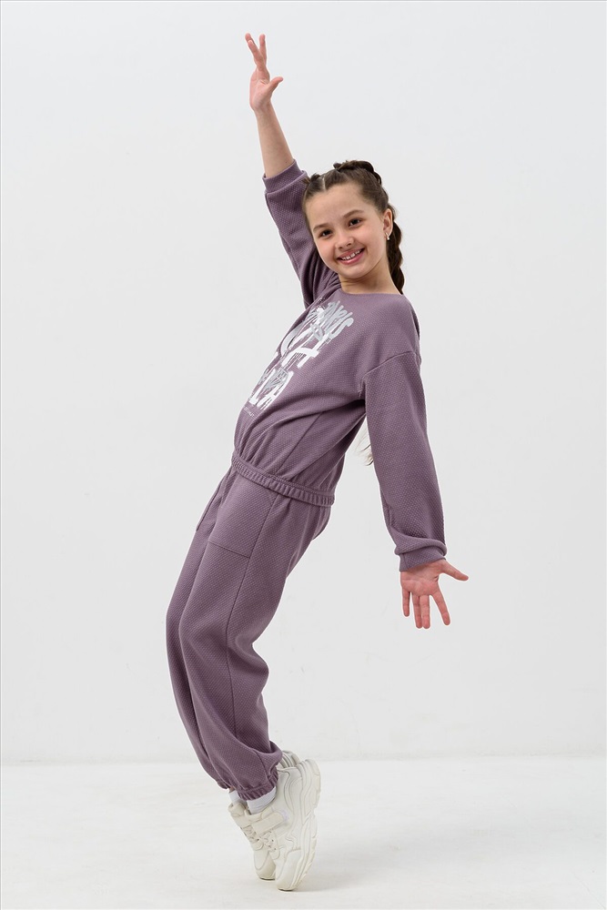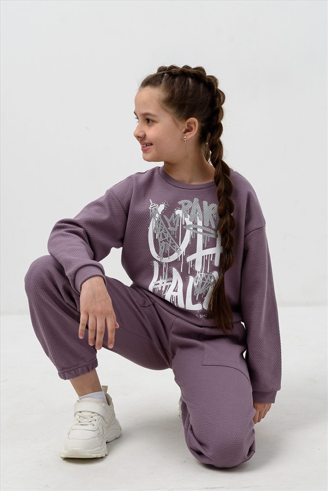 Костюм для девочки представляет собой двойку, состоящий из штанов и стильного свитшота. Костюмчик идеально подходит как для повседневной носки в школу или детский сад и для дома. Наш спортивный костюм для детей сочетает в себе оригинальный фасон трикотажного лонгслива и брюк, подойдёт подростку девушке.