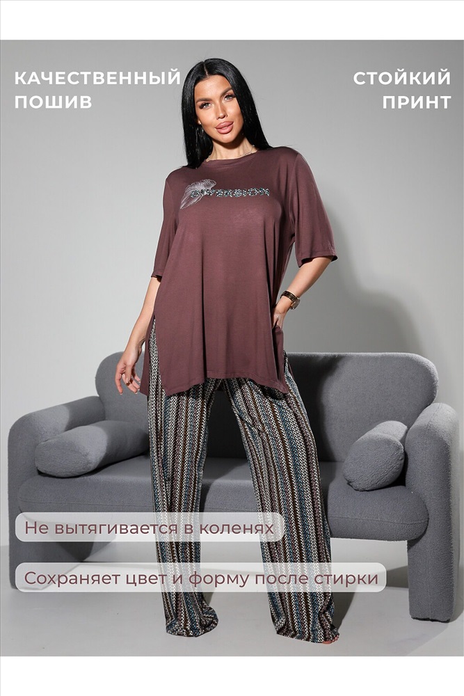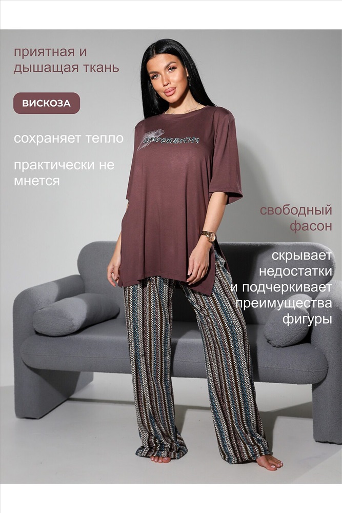 ID товара: 1231812 Состав: 95% вискоза; 5% эластан Сезон: Весна/Лето Рукав: До локтя Вид ткани: Вискоза Страна бренда: Россия Страна производства: Россия Подарите себе истинное наслаждение комфортом и элегантностью с женским домашним костюмом от бренда NINEL. Этот комплект, состоящий из свободной футболки и удобных брюк, создан для того, чтобы вы чувствовали себя расслабленно и уверенно в любой домашней обстановке. Непревзойденный комфорт премиальной вискозы: Сердце этого костюма высококачественная вискоза, материал, который дарит ощущение второй кожи. Мягкая, дышащая и приятная на ощупь, вискоза обеспечивает идеальный микроклимат, позволяя телу дышать и сохраняя ощущение свежести в течение всего дня. Ее нежная текстура ласкает кожу, а естественный блеск придает изделию изысканный вид. Свобода и стиль в каждой детали: Футболка свободного кроя: Эта футболка воплощение непринужденной элегантности. Ее свободный силуэт не сковывает движений, даря максимальный комфорт. Особый акцент стильные разрезы по бокам, которые добавляют образу легкости и современности, а также обеспечивают дополнительную вентиляцию. Круглый вырез горловины и короткие рукава делают футболку универсальной и подходящей для любого времени года. Удобные брюки: Брюки идеально дополняют футболку, создавая гармоничный и завершенный образ. Их свободный крой обеспечивает максимальную свободу движений, а мягкая резинка на поясе гарантирует идеальную посадку без сдавливания. Брюки прекрасно подходят как для отдыха, так и для выполнения домашних дел. Преимущества костюма NINEL: Премиальная вискоза: Натуральный, дышащий и гипоаллергенный материал для вашего комфорта. Свободный крой: Максимальная свобода движений и ощущение легкости. Стильные разрезы на футболке: Современный акцент, добавляющий образу изюминку. Универсальность: Идеален для дома, отдыха и сна. Элегантный дизайн: Сочетание комфорта и утонченного стиля. Бренд NINEL: Гарантия качества и внимания к деталям. Этот домашний костюм от NINEL это не просто одежда, это инвестиция в ваше самочувствие и настроение. Позвольте себе окунуться в мир уюта и стиля, где каждая деталь создана для вашего максимального комфорта. Комментарии к товару