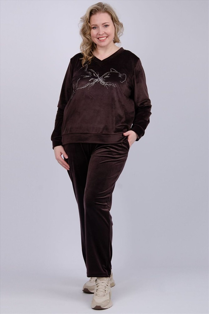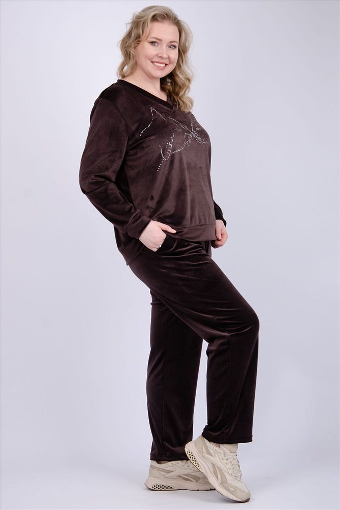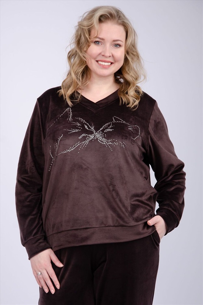 ID товара: 1231405 Состав: 100% полиэстер Сезон: Весна/Лето Рукав: Длинные Вид ткани: Велюр Страна бренда: Россия Страна производства: Россия Женский велюровый костюм - это идеальное сочетание стиля, комфорта и практичности для повседневной жизни. Трикотажный комплект-двойка состоит из свитшота и брюк, которые будут отлично сочетаться с другими вещами из вашего гардероба. Высокая посадка и широкий размерный ряд, включая большие размеры, позволит подобрать комплект для разных типов фигур. Демисезонный костюм идеально подходит для круглогодичной носки, он прекрасно сохраняет тепло. Для осенне-зимнего сезона и для прохладных весенних и летних дней. Неважно, занимаетесь вы спортом или ищете удобную одежду, этот бархатный костюм станет отличным выбором для прогулок, путешествий и вечерних встреч с друзьями. Комментарии к товару