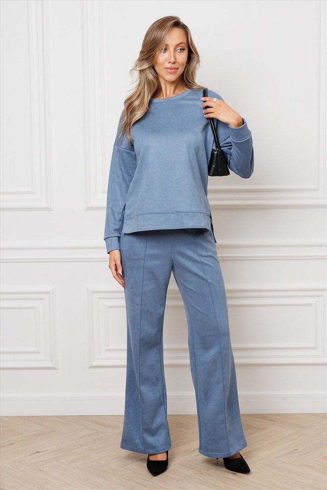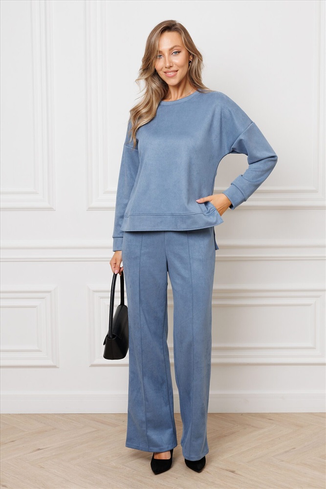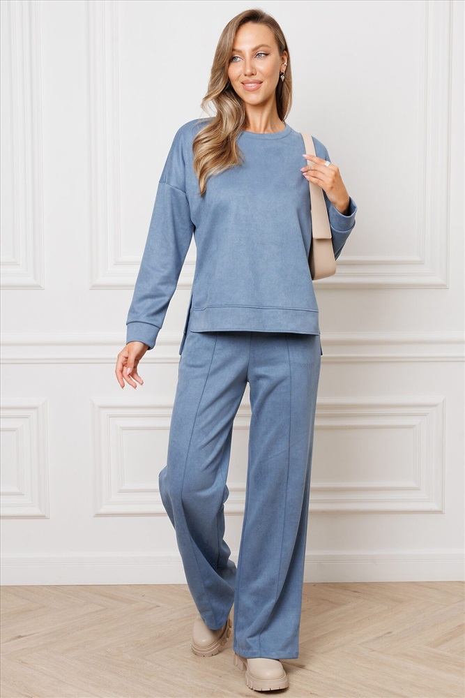 ID товара: 1218219 Состав: 95% Полиэстер, 5% Эластан Сезон: Демисезон Длина: Полная Фасон: Прямой Рукав: Длинные Крой брючин: Прямой Тип карманов: В шве Основная ткань: Полиэстер Стиль: повседневный Вид ткани: Эко-замша Страна бренда: Россия Страна производства: Россия Женский брючный замшевый костюм от российского производителя бренда женской одежды. Невероятно мягкий, удобный теплый комплект из замшевого материала приятного к телу в составе лонгслива и свободных брюк палаццо. Свитшот с длинным рукавом, округлым вырезом горловины. Разрезы по боковым швам кофты и асимметричный крой верха с удлиненной спинкой. Прямые брюки с широкой резинкой на поясе, карманами с отрезным бочком и эффектными отстроченными стрелками по фасаду изделия стойнят силуэт. Необычное дизайнерское решение позволило совместить элегантную классику и эффектный стиль. Базовый вариант подойдет для повседневного ношения в офис или на деловую встречу. На любом мероприятии Вы будете чувствовать себя нарядно и комфортно. Стильный классический костюм подойдет для любого вечера или праздника. Универсальность модели позволит носить его, как в теплые весенний и летний сезоны, так и в холодное время года осень зима. Комплект подойдет для женщин невысокого роста, а также для высоких девушек. Такая двойка гармонично впишется в спортивный или домашний стиль. Трендовый дизайн с элементами олд мани создает шикарный и современный вид. Модель выполнена из легкой, но теплой ткани, что делает ее идеальной для прохладной погоды. Свободные брюки палаццо обеспечивают удобство движения, а джемпер сохраняет тепло. Каждый элемент костюма может носиться отдельно в сочетании с другими элементами гардероба, создавая модные образы. Трендовый костюм позволит подчеркнуть стройность Вашей фигуры. Модель доступна в больших размерах плюс сайз - 50, 52 и 54, будет шикарно смотреться в любом возрасте, подойдет для полных девушек и беременных женщин. Перед использованием рекомендуется предварительная стирка отдельно от других вещей. Комментарии к товару