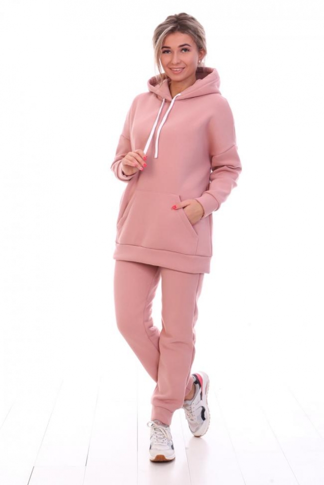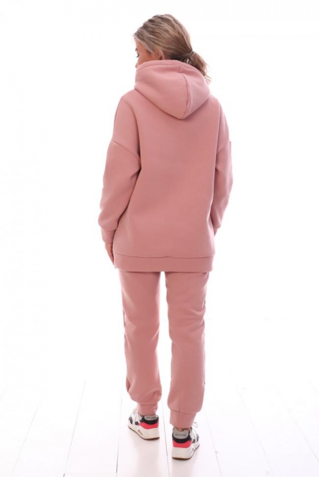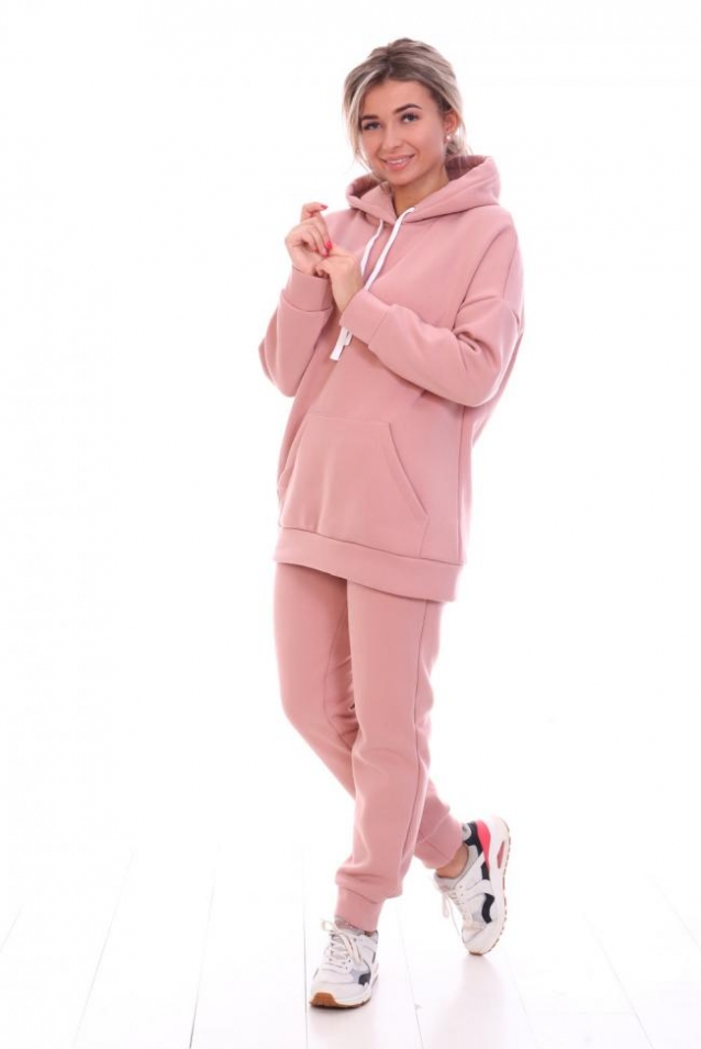 Ультрамодный костюм из качественного турецкого футера с начесом. В комплект входит толстовка и брюки. Толстовка свободного кроя с капюшоном и накладным карманом, брюки на резинке и с манжетами внизу брючин. В этом костюме вам будет необыкновенно тепло и уютно.
