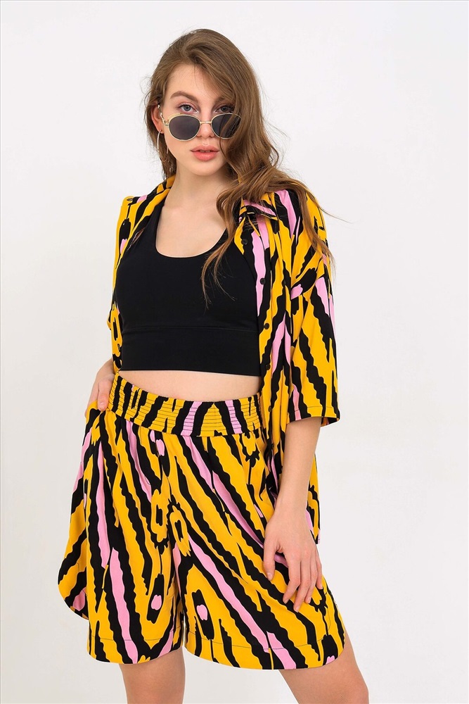 Костюм летний женский представляет собой комплект - шорты и рубашка, который станет отличным дополнением вашего гардероба. Данная модель выполнена из штапеля (100 % вискоза). Ткань, из которой выполнен костюм летний, не мнётся, быстро сохнет и не садится при стирке. Приобретая данный летний женский костюм, вы получаете не только полноценный образ, но и два отдельных элемента одежды. Мы уверены, что летний женский костюм топ станет вашим любимым этим летом!