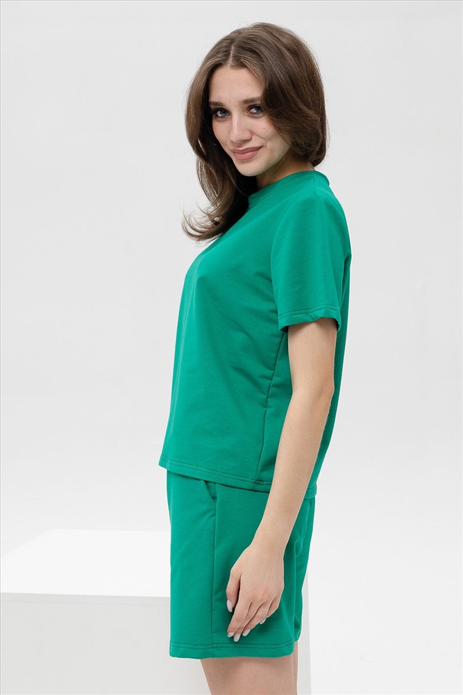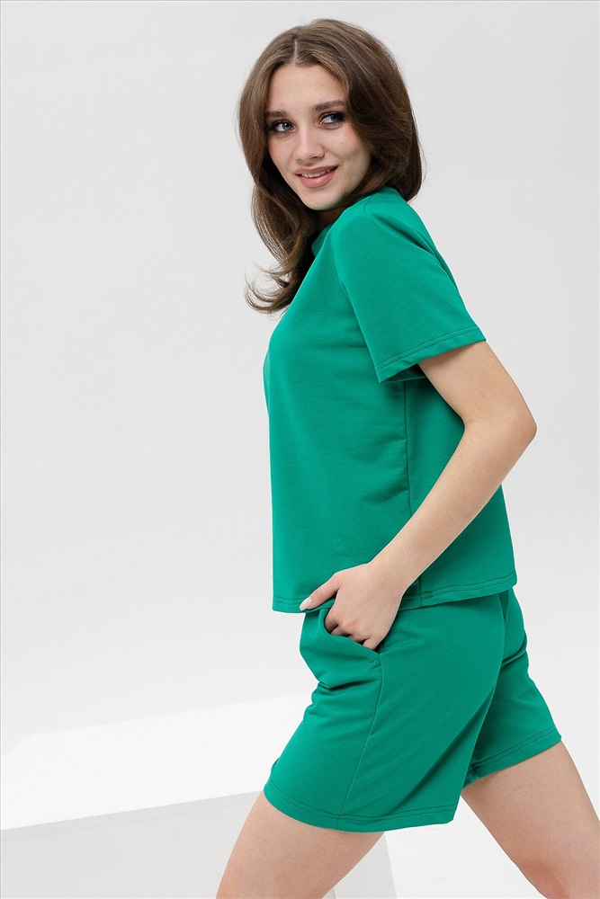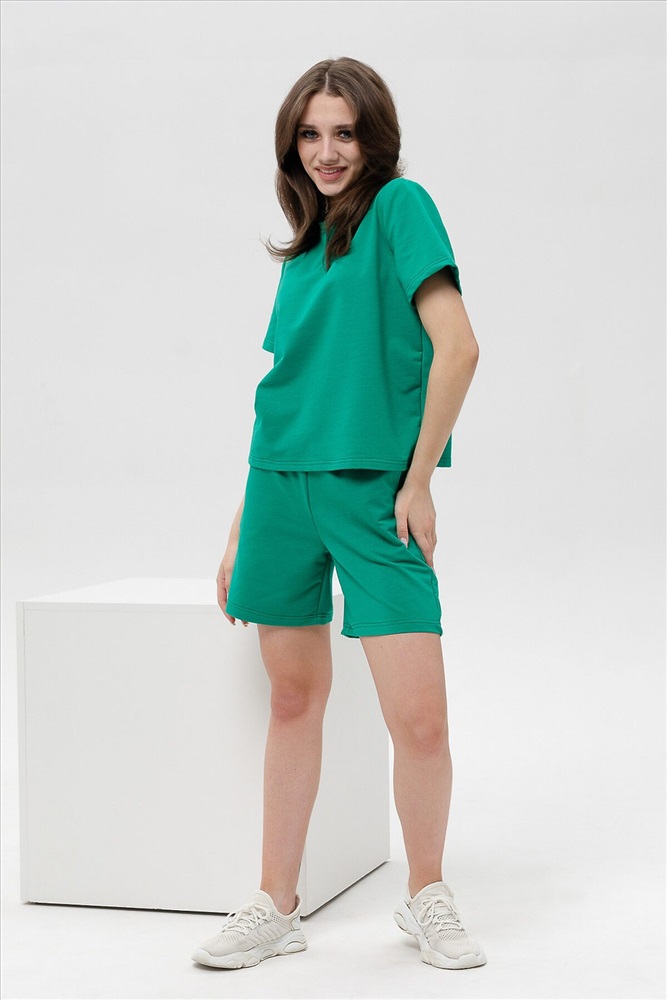 СПЕЦЗАКАЗ Женский костюм из футболки с шортами. Верх: однотонная футболка с коротким рукавом. Комфортная футболка для дома и занятий спортом. Актуальный крой и трендовые расцветки модели делают её универсальной для летнего гардероба. Низ: Шорты свободного покроя с карманами. Костюм спортивный в приятных модных расцветках. Комплект будет идеально смотреться как домашний и как спортивный на летний сезон. Костюм сшит из футера. Это износостойкая, приятная на ощупь, мягкая ткань из натурального хлопка. За ней легко ухаживать.