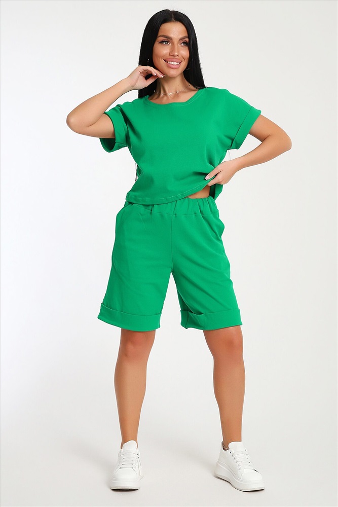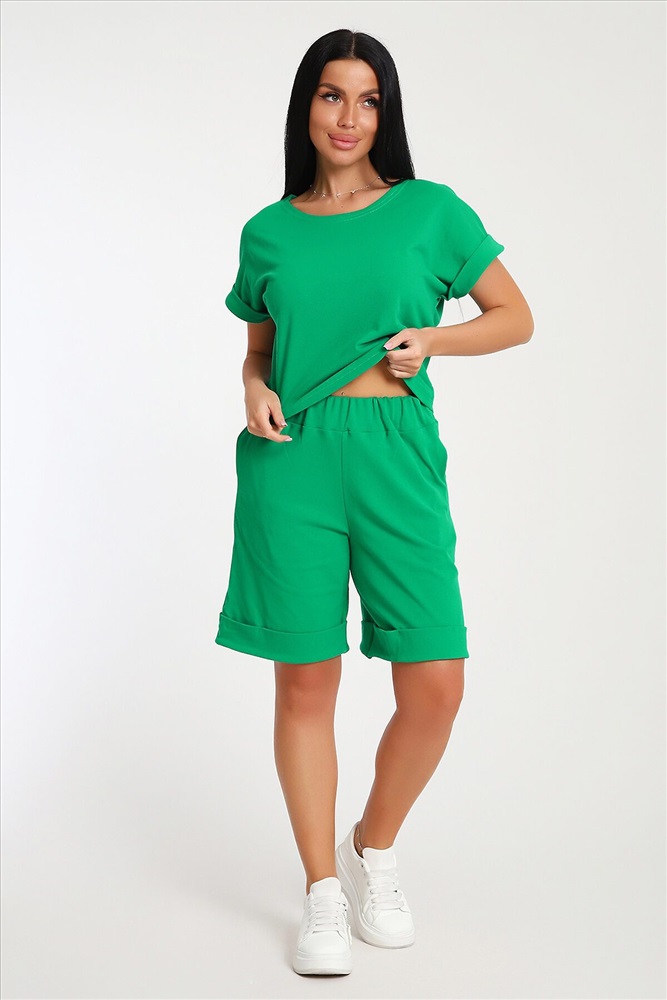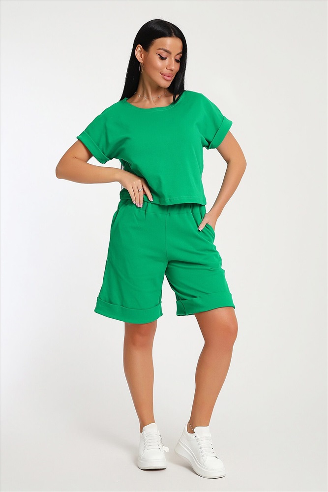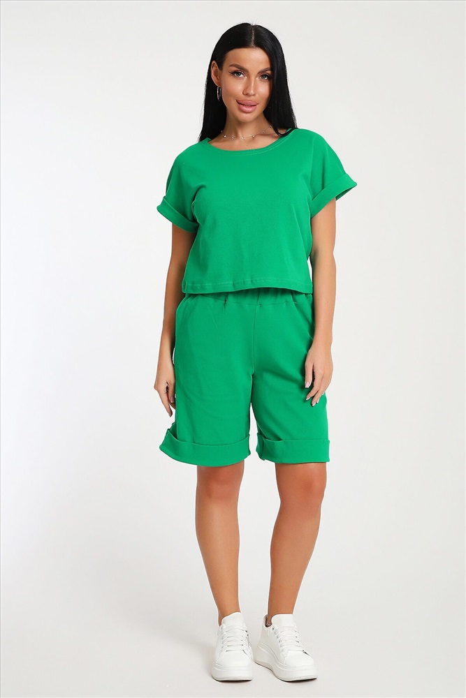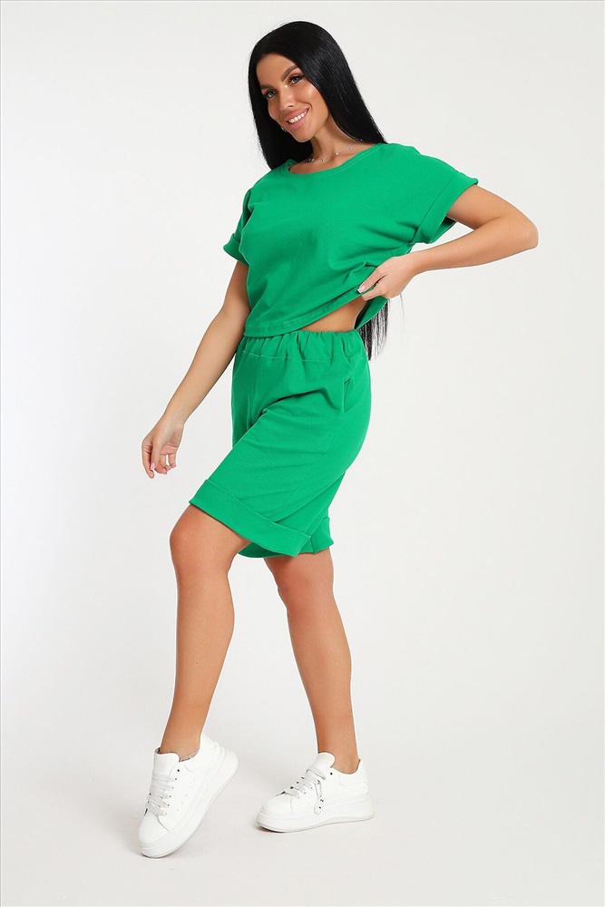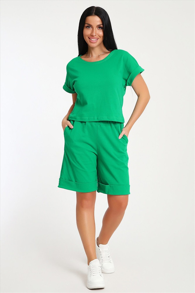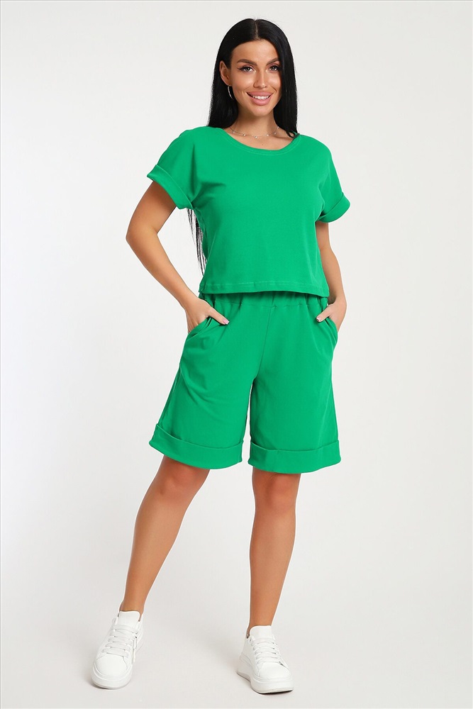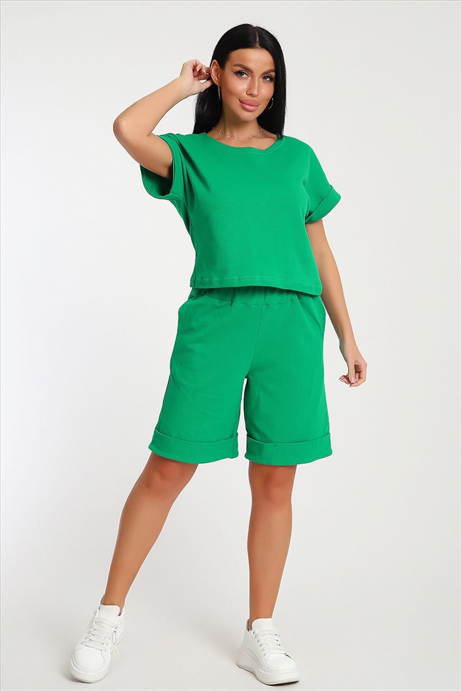 ID товара: 1071692 Состав: 80% Хлопок, 20% Полиэстер Сезон: Весна/Лето Длина: Средняя Фасон: Свободный крой Рукав: короткие Крой брючин: Прямой Тип карманов: В шве Основная ткань: Хлопок Стиль: повседневный Вид ткани: Пике Страна бренда: Россия Страна производства: Россия Костюм с шортами бермудами прекрасный вариант для комфортного время препровождения летом на прогулке, на даче, на море. Укороченная футболка свободно садится по фигуре, визуально стройнит, в сочетании с удлиненными шортами создает стильный, романтичный образ. Шорты с глубокими карманами в боковых швах подойдут для активного образа жизни, занятий спортом. Костюм с шортами можно носить в качестве домашней одежды. Комментарии к товару