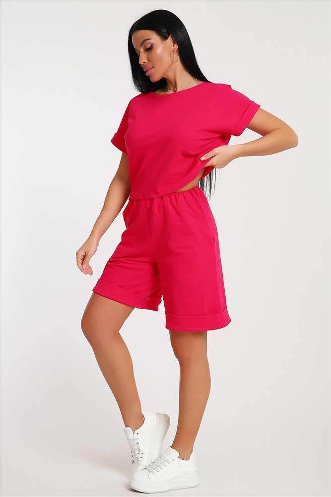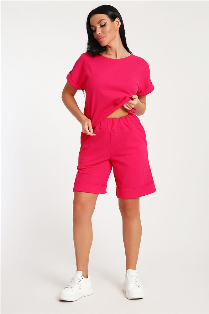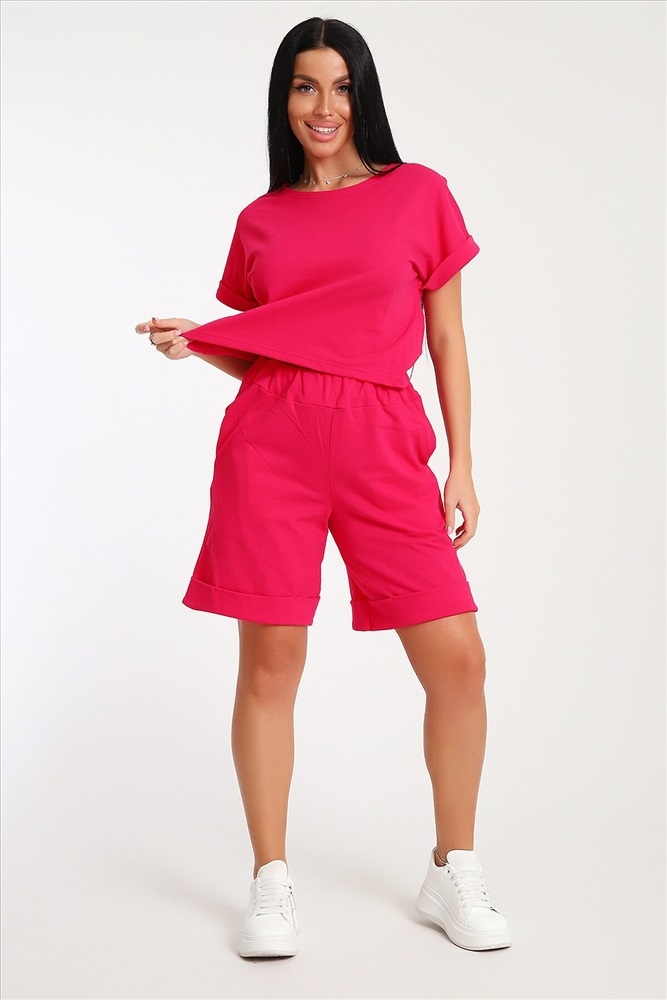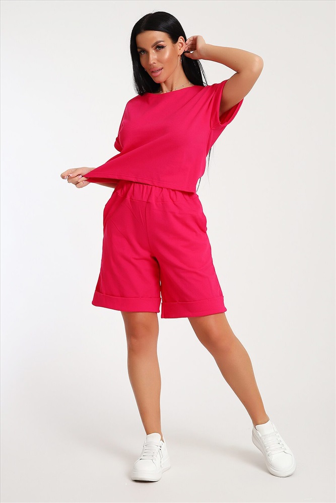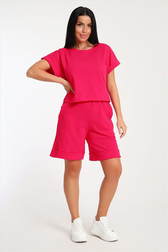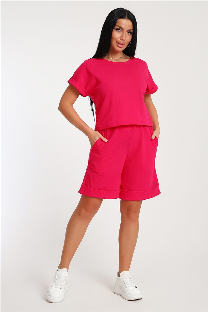 ID товара: 1071693 Состав: 80% Хлопок, 20% Полиэстер Сезон: Весна/Лето Длина: Средняя Фасон: Свободный Рукав: короткие Крой брючин: Прямой Тип карманов: В шве Основная ткань: Хлопок Стиль: повседневный Вид ткани: Пике Страна бренда: Россия Страна производства: Россия Костюм с шортами бермудами прекрасный вариант для комфортного время препровождения летом на прогулке, на даче, на море. Укороченная футболка свободно садится по фигуре, визуально стройнит, в сочетании с удлиненными шортами создает стильный, романтичный образ. Шорты с глубокими карманами в боковых швах подойдут для активного образа жизни, занятий спортом. Костюм с шортами можно носить в качестве домашней одежды. Комментарии к товару