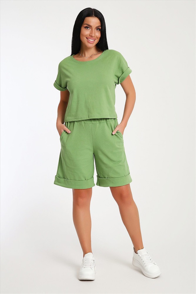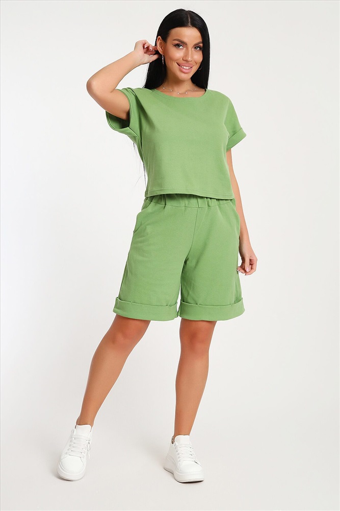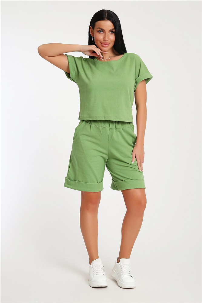 ID товара: 1071694 Состав: 80% Хлопок, 20% Полиэстер Сезон: Весна/Лето Длина: Средняя Фасон: Свободный Рукав: короткие Крой брючин: Прямой Тип карманов: В шве Основная ткань: Хлопок Стиль: повседневный Вид ткани: Пике Страна бренда: Россия Страна производства: Россия Костюм с шортами бермудами прекрасный вариант для комфортного время препровождения летом на прогулке, на даче, на море. Укороченная футболка свободно садится по фигуре, визуально стройнит, в сочетании с удлиненными шортами создает стильный, романтичный образ. Шорты с глубокими карманами в боковых швах подойдут для активного образа жизни, занятий спортом. Костюм с шортами можно носить в качестве домашней одежды. Комментарии к товару