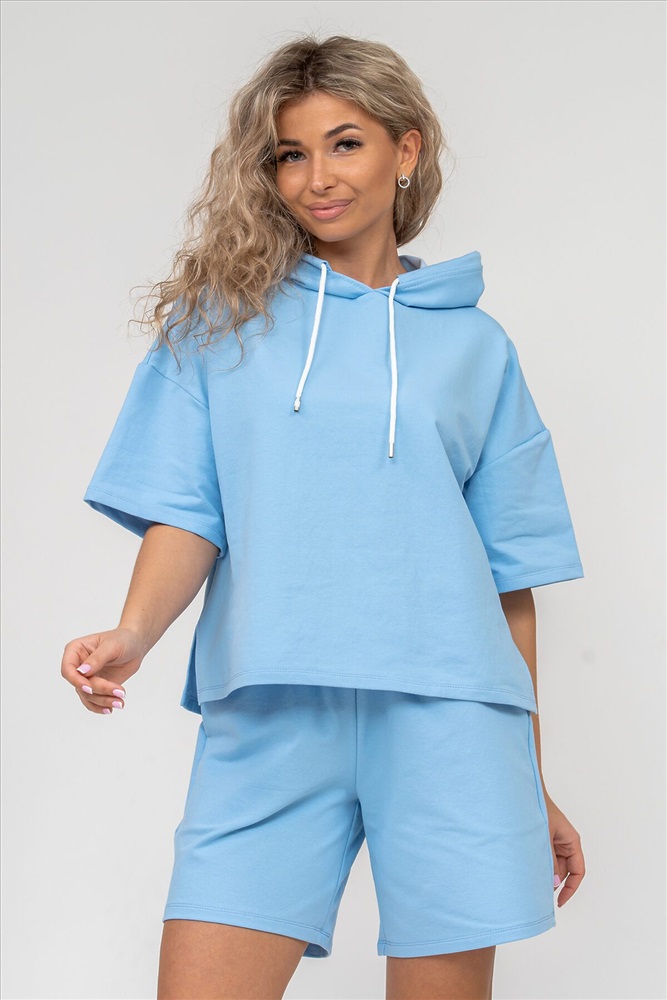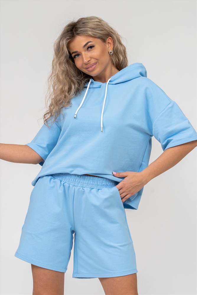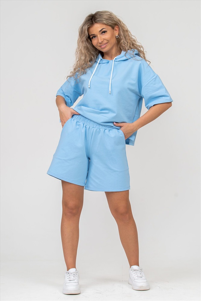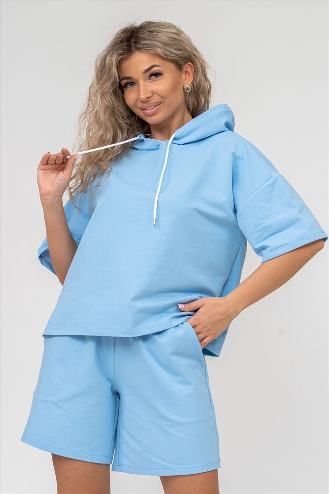 ID товара: 898976 Состав: 72% Хлопок, 20% Полиэстер, 8% Лайкра Сезон: Весна/Лето Длина: Средняя Фасон: Свободный крой Рукав: короткие Тип карманов: есть Основная ткань: Хлопок Стиль: Повседневный Вид ткани: Футер 2-х нитка Страна бренда: Россия Страна производства: Россия Женский костюм 2-ка выполнен из футера высокого качества с хлопком и небольшим добавлением полиэстера и лайкры, что позволяет изделию не скатываться и оставлять идеальный внешний вид на долгое время. Костюм состоит из толстовки и шорт. Толстовка с капюшоном и шнурком. Линия плеча спущена, рукав укороченный, по бокам имеются небольшие разрезы. Свободный крой прекрасно будет смотреться на дамах с любыми формами. Костюм такого плана представлен в широкой размерной сетке, что позволяет выбрать его как девушке, так и женщине. Однотонный костюм модных расцветок будет удачным выбором для поездок в отпуск, на пикник, для активного отдыха и прогулок по городу. Будет гармонично сочетаться как с кроссовками, так и с туфлями, балетками или босоножками. Используя эту модель в качестве домашнего костюма, Вы поймёте, что это именно тот самый идеальный вариант, в котором вы будете себя чувствовать удобно, комфортно и современно. Костюм с шортами - это настоящая находка для тех, кто ценит свою индивидуальность! Ориентируясь по таблице замеров, обратите внимание, что замеры длины рукава проводились от точки основания шеи. Комментарии к товару