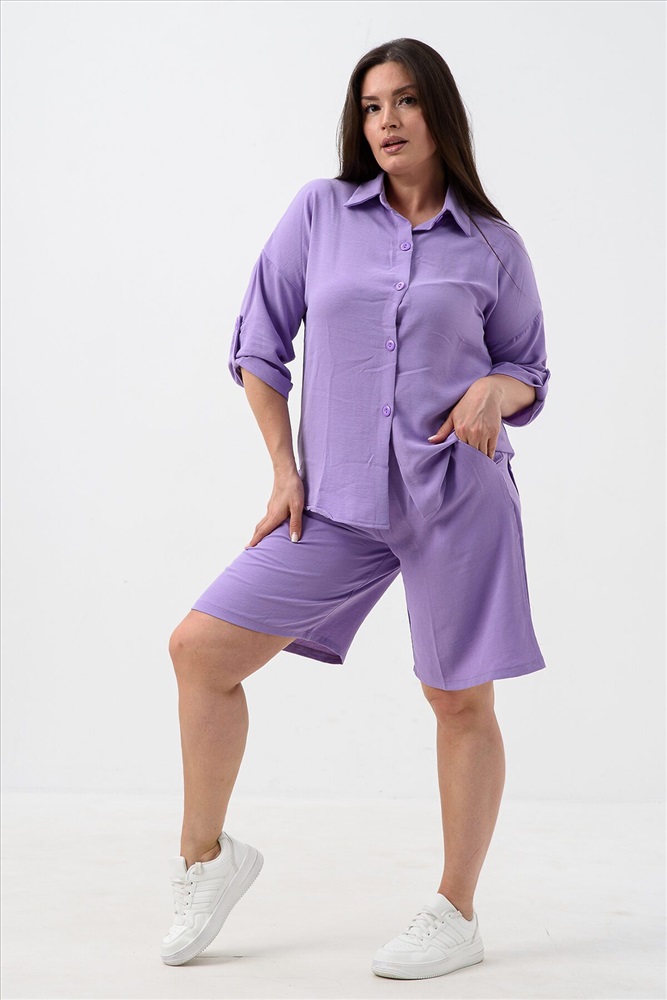 Костюм женский (рубашка+шорты) из сингапура. Хотите выглядеть стильно и оригинально в летнюю жару? Легкая рубашка с шортами - это именно то, что Вам нужно. Ведь это тренд 2025 года. Он состоит из 2‑х частей легкой блузки и бермуд на резинке. Шорты выполнены из тонкого сингапура и сшиты в свободном стиле оверсайз. Рубашка имеет свободный крой со средней по длине рукавами, на пуговицах. Комплект подойдет и для больших размеров и для девочек подростков. Яркие цвета и удобный оверсайз - наше преимущество. Смело выбирайте повседневный наряд, который можно одеть в любое время дня и на любое мероприятие.