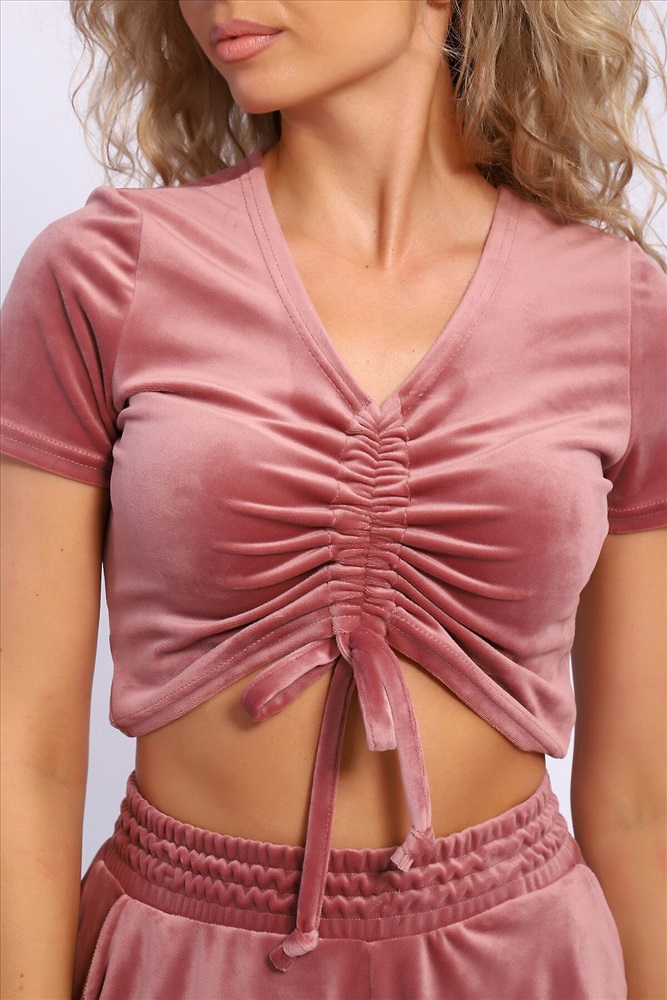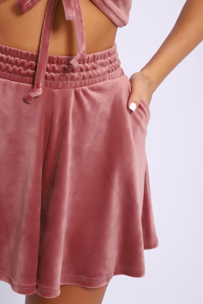 ID товара: 1020171 Состав: 92% Полиэстер, 8% Лайкра Сезон: Весна/Лето Длина: Средняя Фасон: Полуприлегающий Рукав: короткие Крой брючин: Широкий Декоративные элементы: Сборка Основная ткань: Полиэстер Стиль: повседневный Вид ткани: Велюр Страна бренда: Россия Страна производства: Россия Костюм выполнен из мягкого велюра. Нежный материал придает изделию благородный лоск, а сборка на завязках на груди топа и складки на юбке-шортах образуют роскошные переливы. Облегающий крой топа подчеркнет изгибы вашей фигуры, а укороченная длина акцентирует изящную талию. Юбка-шорты позволяет чувствовать себя уверенно и комфортно, не сковывает движения. Имеет глубокие карманы, позволяющие взять с собой всё необходимое. Юбка-шорты на резинке оригинального фасона, сочетается с любым верхом. Костюм подходит для любых мероприятий, от прогулки по городу, на природе, до танцев и спорта. Комментарии к товару