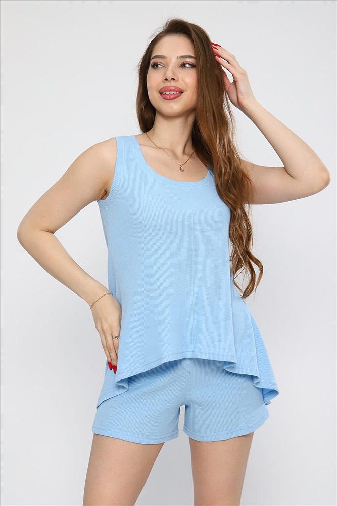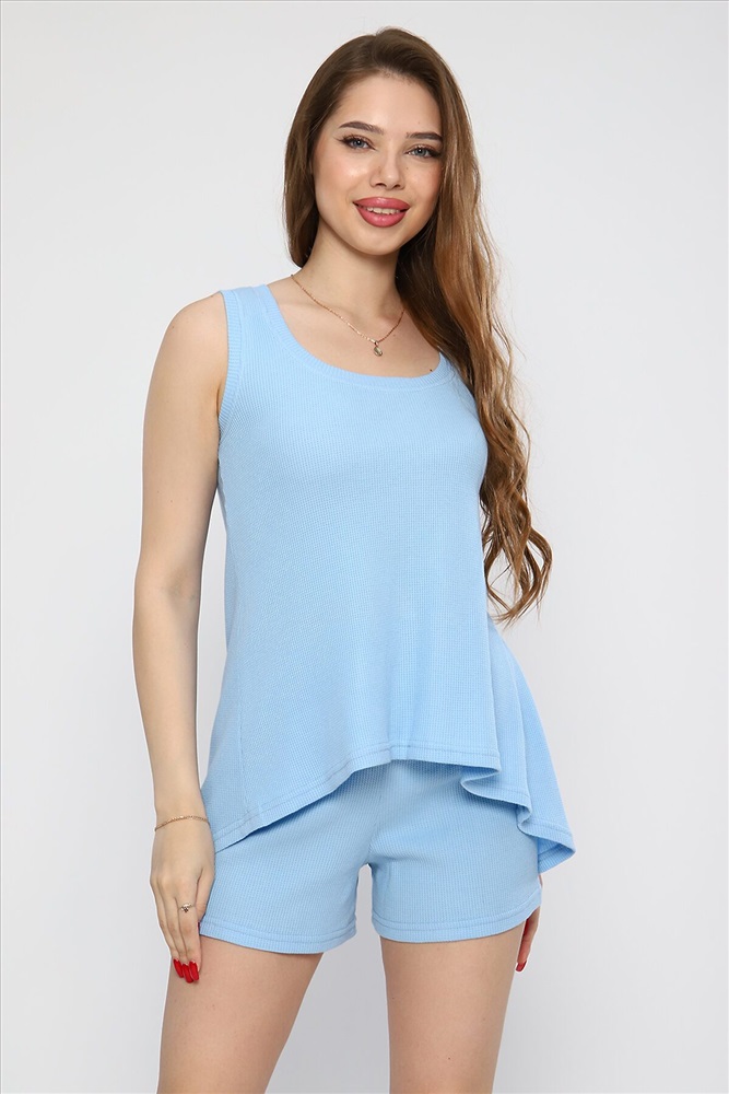 Молодежный костюм хлопковый, вафельный, состоит из майки и шорт. Майка очень сексуальная. Спинка состоит двух половинок, соединенные закрепками, что делает ее более легкой и удобной. Перед майки короткий, а спинка удлиненная. Шорты свободные, без карманов. Наш костюмчик станет незаменимой вещью в вашем гардеробе и станет любимым нарядом в путешествиях, на море, на отдыхе. Костюм подходит для девушек, женщин, подростков, беременных и молодых мам. Ткань износостойкая и воздухопроницаемая, что позволяет коже дышать, в ней не жарко даже при максимальных температурах. В нашем костюме вам будет удобно и комфортно!