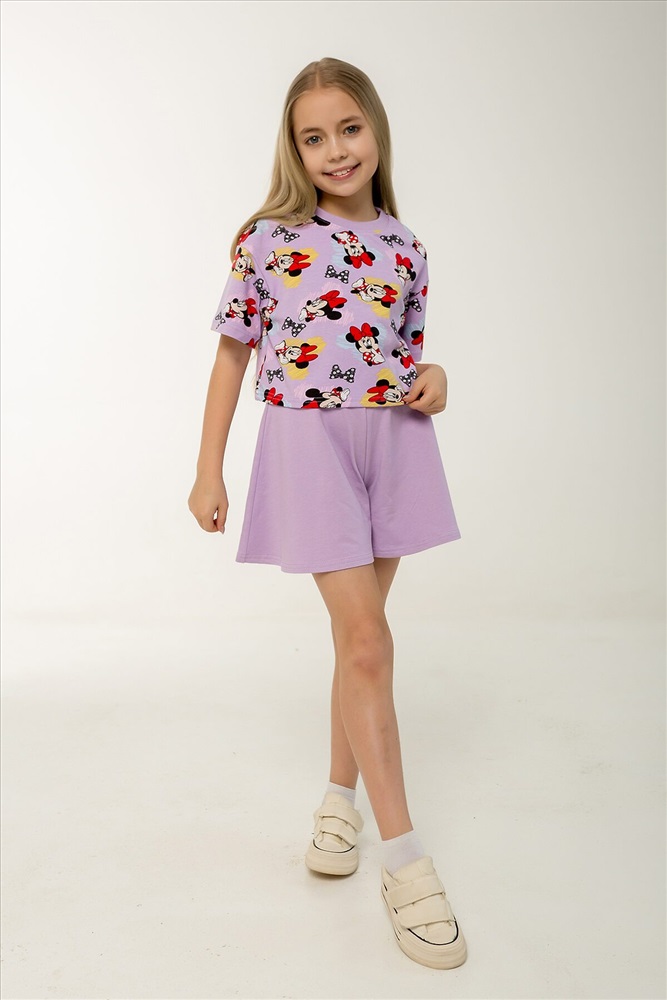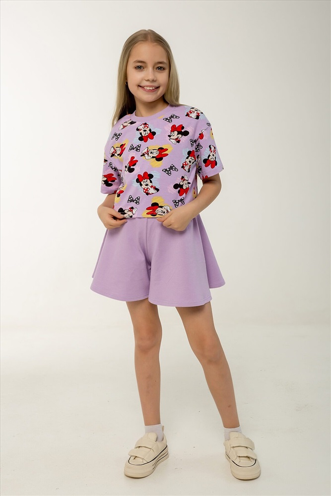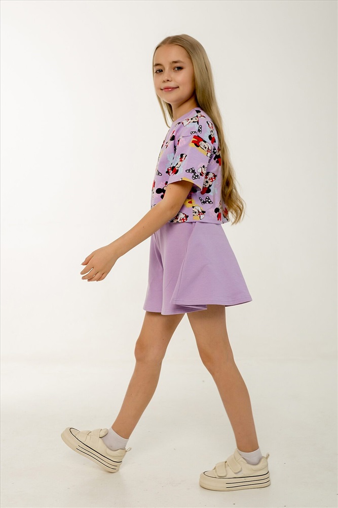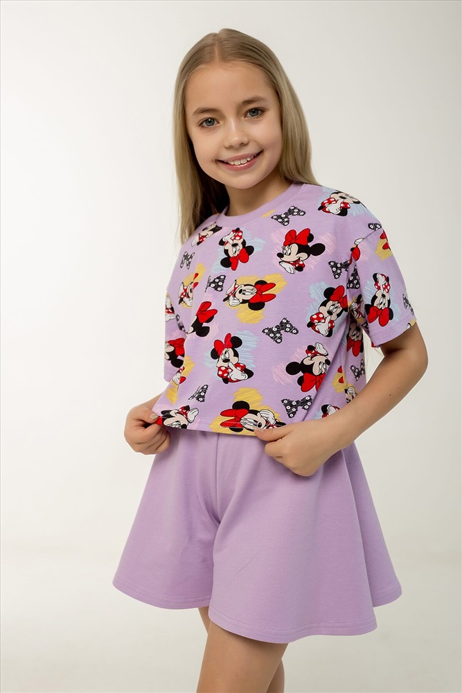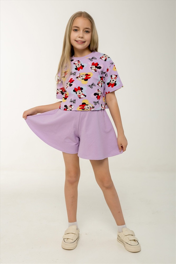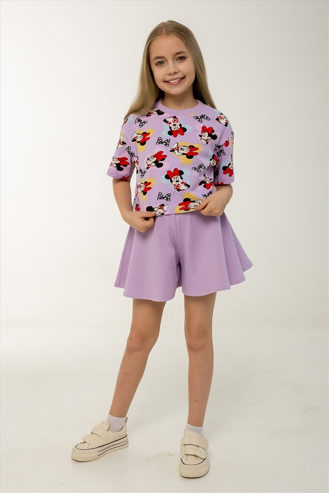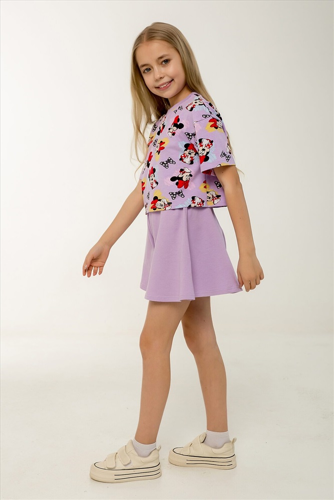ID товара: 1237214 Состав: Верх- 90% хл, 10% лайкра; низ- 95% хл, 5% лайкра Сезон: Весна/Лето Фасон: Расклешенное Рукав: короткие Вид ткани: Кулирка с лайкрой, петельчатый футер Страна бренда: Россия Страна производства: Россия Этот яркий и стильный костюм станет отличным выбором для жаркого лета! Комплект включает укороченный топик свободного кроя с короткими рукавами и шорты-юбку трапециевидного силуэта на поясе с резинкой. Топик выполнен в насыщенном сиреневом оттенке с забавным рисунком любимого персонажа Минни Маус. Шорты-юбка изготовлены из однотонной ткани в тон основного цвета комплекта, что создает гармоничный и законченный образ. Оба элемента костюма сделаны из петельчатого фетера, который прекрасно дышит и обеспечивает комфорт даже в самые жаркие дни. Такой комплект идеально подойдет для повседневных прогулок, отдыха на пляже, а также для детского сада. Каждый элемент можно носить отдельно, сочетая с другой одеждой и создавая новые интересные образы. Костюм сертифицирован и произведен на фабрике Мариша, известной своим высоким качеством продукции. Комментарии к товару