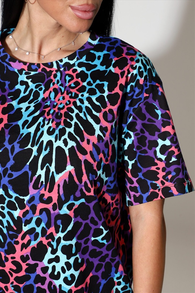 Производитель: НАТАЛИ ID товара: 1128392 Состав: 100% Хлопок Сезон: Весна/Лето Длина: Средняя Фасон: Свободный Рукав: короткие Крой брючин: Прямой Рисунок: леопардовый Тип карманов: С отрезным бочком Декоративные элементы: Принт Основная ткань: Хлопок Стиль: повседневный Вид ткани: Кулирка Страна бренда: Россия Страна производства: Россия