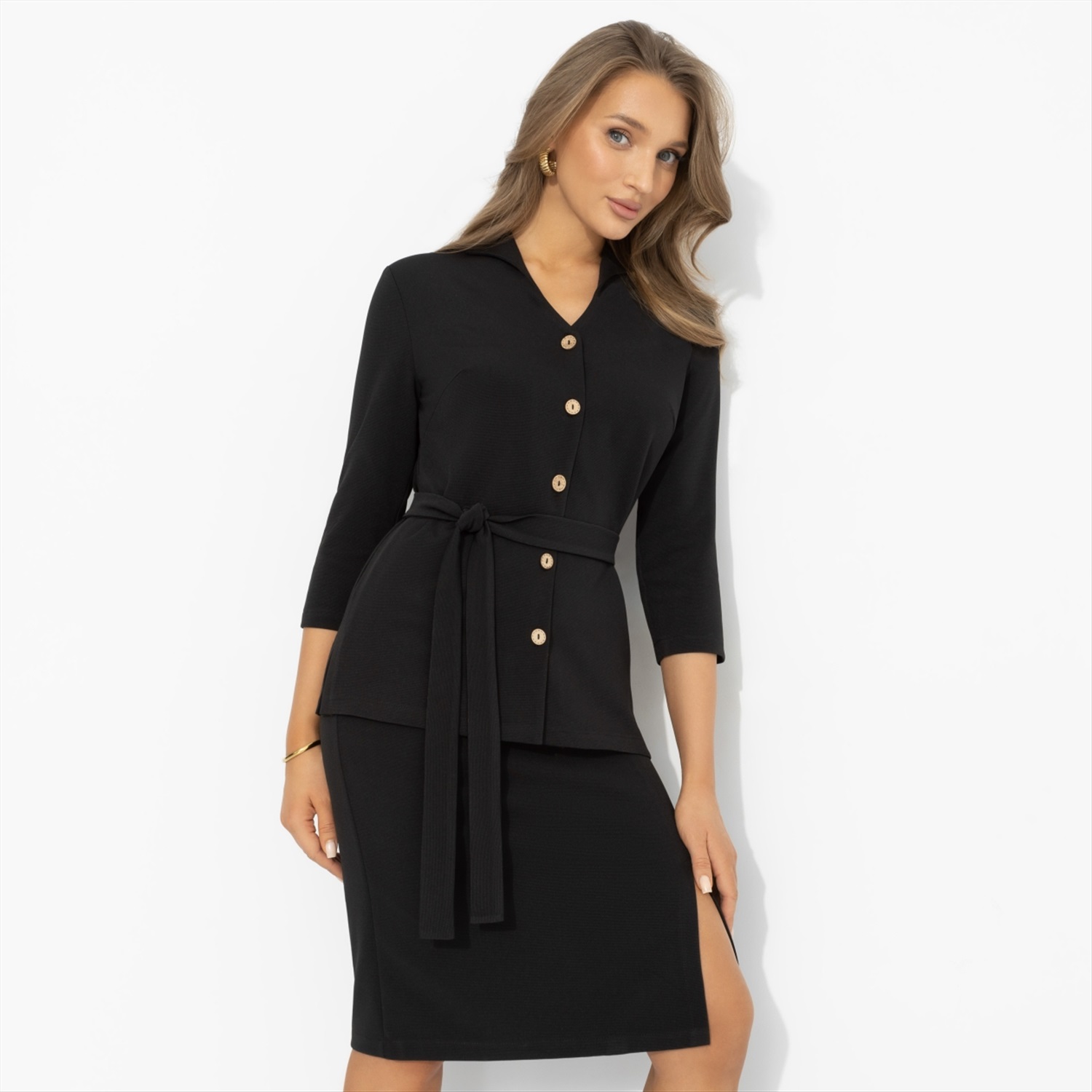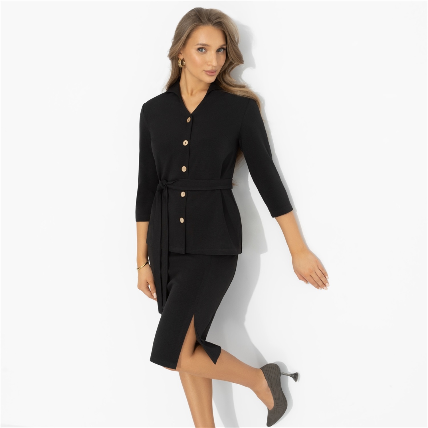 Уверенность не говорит о себе вслух – ее считывают по осанке, походке и тому, как на вас сидит одежда. Комплект «Гордая и дикая» создан для тех, кто точно знает себе цену, и позволяет миру это заметить. Спокойно и без лишних слов. Костюм 2 в 1 от ЧАРУТТИ: жакет полуприлегающего силуэта с поясом подчеркивает талию + юбка миди по фигуре. Образ для комфорта и уверенности в течение всего дня. Комментарии к товару