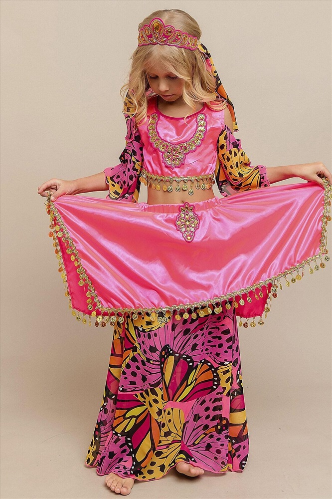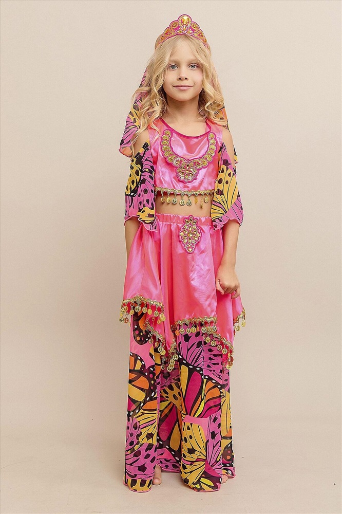 ID товара: 1204123 Состав: 50% Хлопок, 50% Полиэстер Сезон: Демисезон Рукав: короткие Крой брючин: Широкий Основная ткань: Хлопок Страна бренда: Россия Страна производства: Россия Карнавальный костюм «Шахерезада» — изящный восточный образ для праздников, утренников и сценических выступлений. В комплект входят топ, брюки и головной убор, выполненные из лёгкого шифона и блестящего сатина. Яркий и эффектный наряд поможет ребёнку почувствовать себя настоящей героиней восточной сказки. Характеристики: