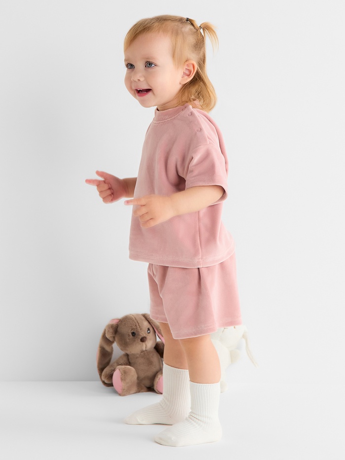 Габариты: 22 x 17 x 4 В боксе: 70 комплект Размер: 26 Рост, см: 74, 80 Сезон: Лето, Демисезон Рекомендации по уходу: Стирка при 30 °С, Глажка с изнаночной стороны, Не отбеливать, Деликатный режим отжима Состав ткани: Полиэстер, Спандекс Страна: Россия Состав: Полиэстер 95%, спандекс 5% Материалы: полиэстер, спандекс Фасовка: по 1 комплект Сертификат: ЕАС Цвет: Розовый Для кого: Для девочки Назначение: Повседневная Ткань: Плюш Тематика: Однотонная Декоративные элементы: Без элементов Составляющие набора: Шорты, Футболка Комментарии к товару