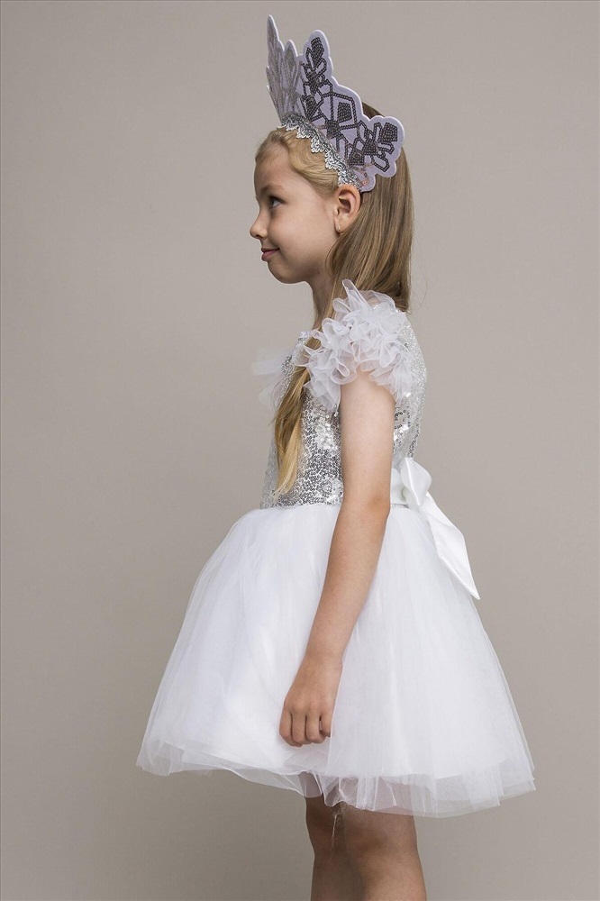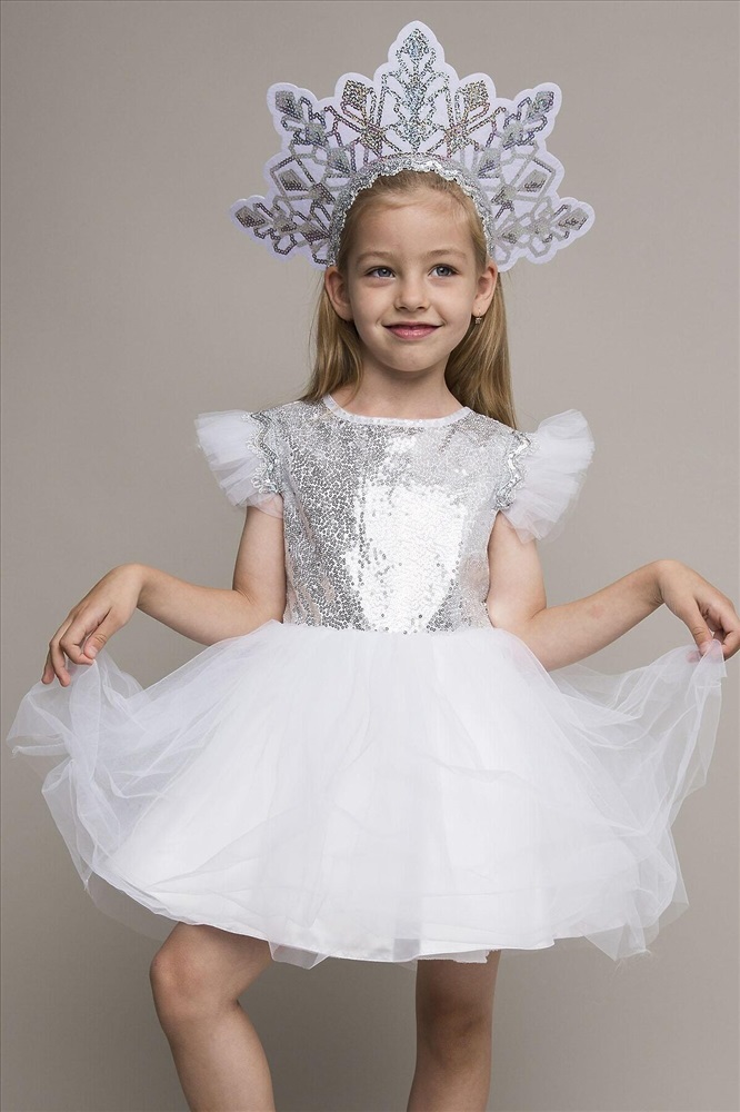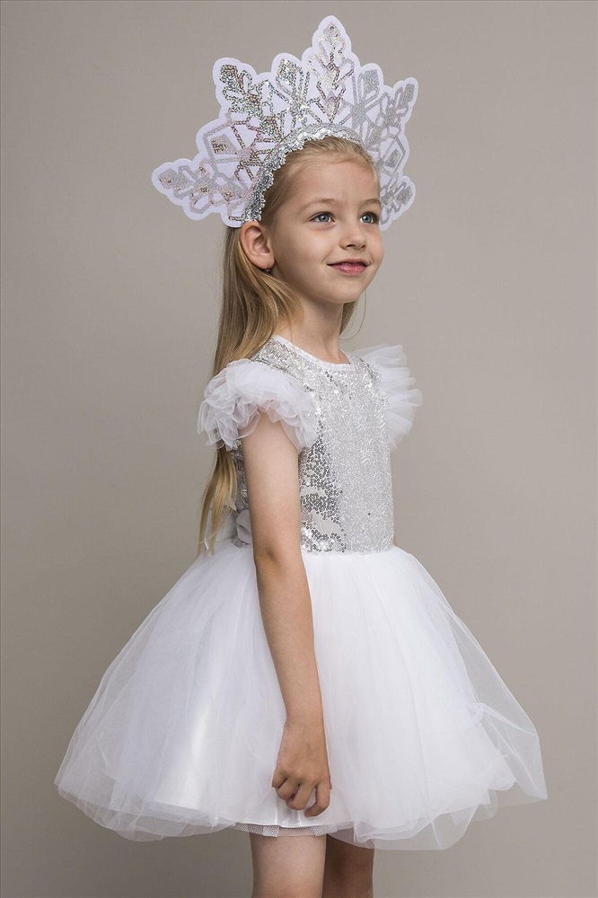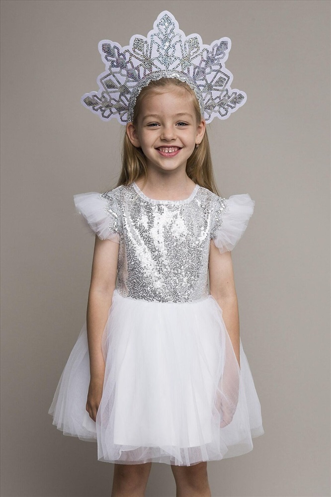 Карнавальный костюм «Снежинка Элис» — нежный и нарядный образ для утренников, новогодних праздников и театральных постановок. Лёгкое пышное платье с блестящим декором и воздушными деталями создаёт волшебный образ снежинки, а удобный крой обеспечивает комфорт во время праздника. Отличный выбор для маленькой принцессы!