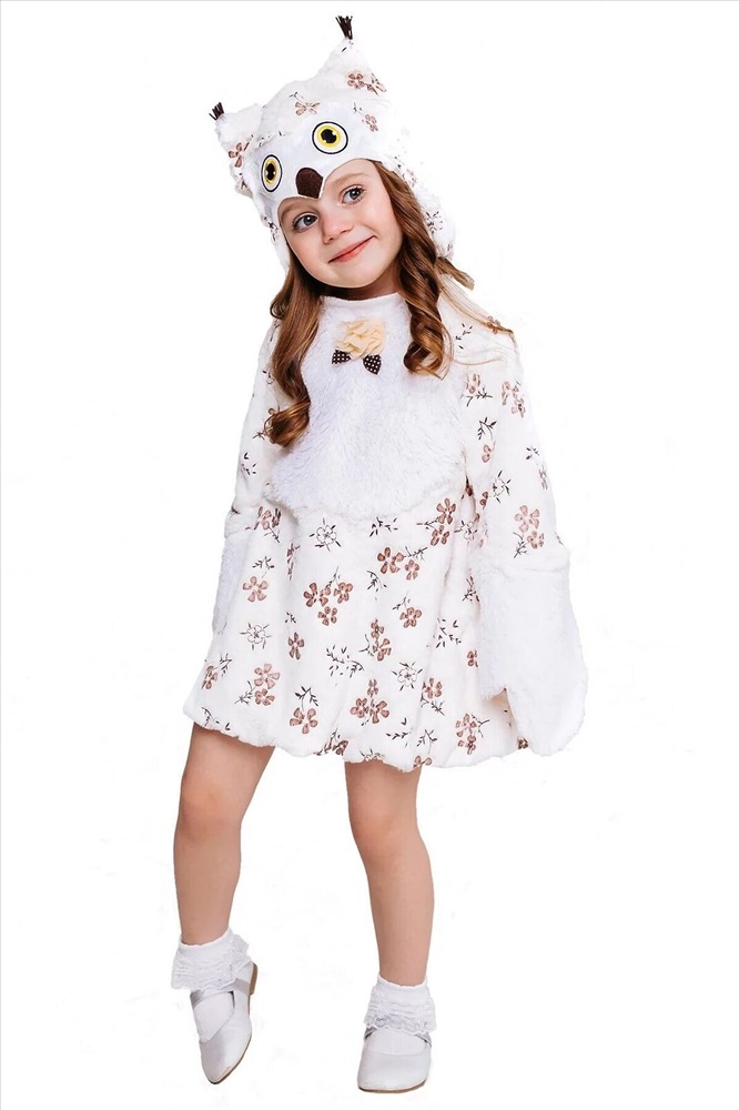 ID товара: 954268 Состав: Полиэстер Сезон: Демисезон Длина: Миди Фасон: Свободный крой Рукав: длинные Модель юбки/платья: Расклешенная Основная ткань: Полиэстер Стиль: Повседневный Страна бренда: Россия Страна производства: Россия Сова Нюша - добрая сказочная героиня, которую можно увидеть в спектаклях по русским народным сказкам или в постановках по Винни Пуху. Красивый и оригинальный образ отлично подойдет для новогодней елки, детского утренника. Рассчитан на девочек возраста 3-5 лет. В комплекте наряда платье и маска. Особенности: -Платье короткое бежевого цвета -Мягкий плюшевый материал -Оторочка белым мехом рукавов и воротника -Цветочная вышивка на платье -Рукава в виде крыльев -Резинка в подоле -Шапка-маска с изображением совы и длинными ушками Комментарии к товару