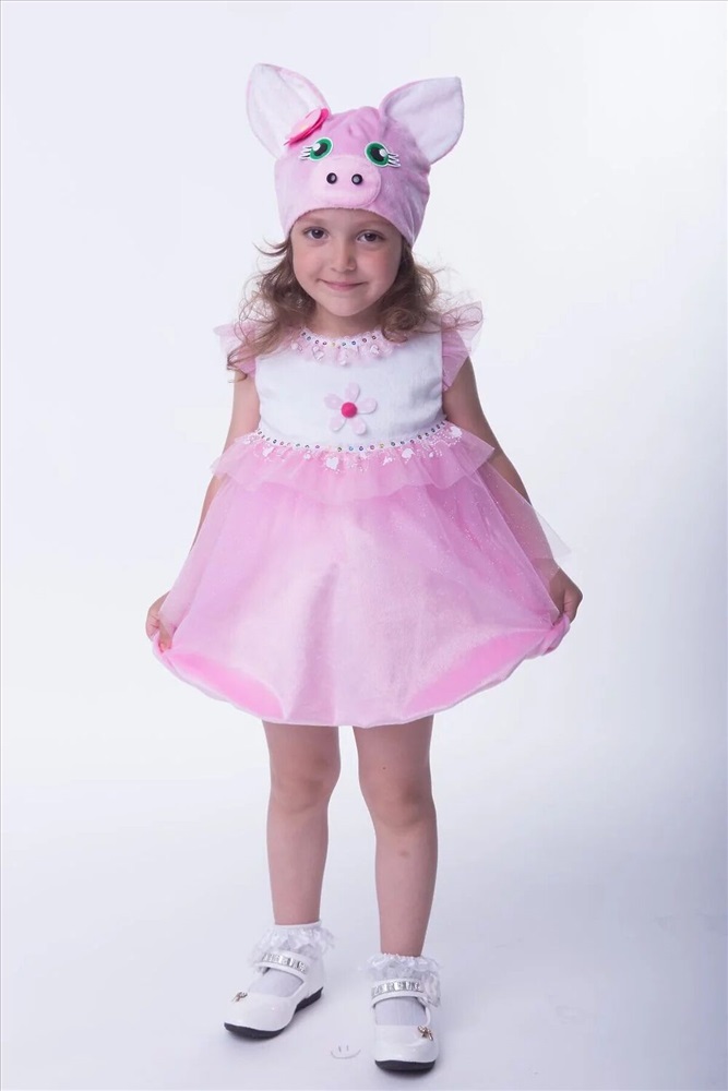 ID товара: 954242 Состав: Полиэстер Сезон: Демисезон Длина: Полная Фасон: Расклешенное Рукав: Крылышки Модель юбки/платья: Расклешенная Основная ткань: Полиэстер Стиль: Нарядный Страна бренда: Россия Страна производства: Россия Легкий наряд, в котором девочка не будет чувствовать никакого дискомфорта, и сможет провести праздник отлично и весело. Комплект костюма состоит из платья и шапочки-маски. Особенности: -Короткое платье бело-розового цвета -Прозрачные рукава-крылышки -Декорированные оборками и пайетками воротник и пояс -Многослойная юбка из плюша и фатина -Шапка с глазами, пятачком и ушками Комментарии к товару