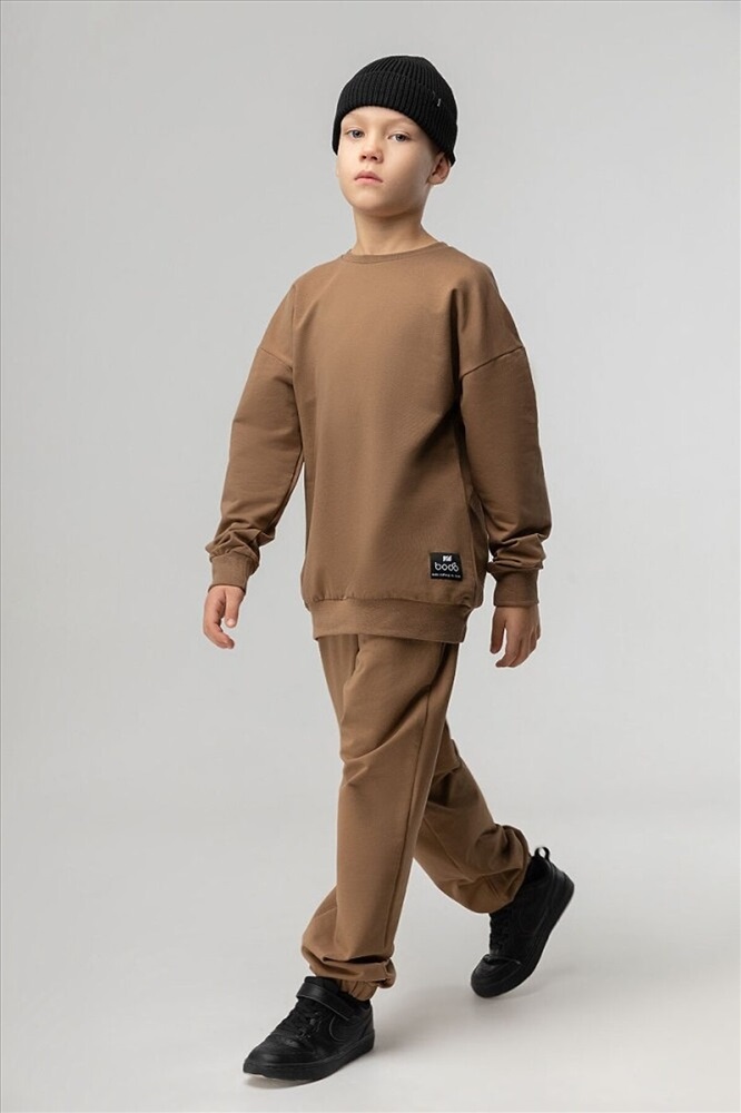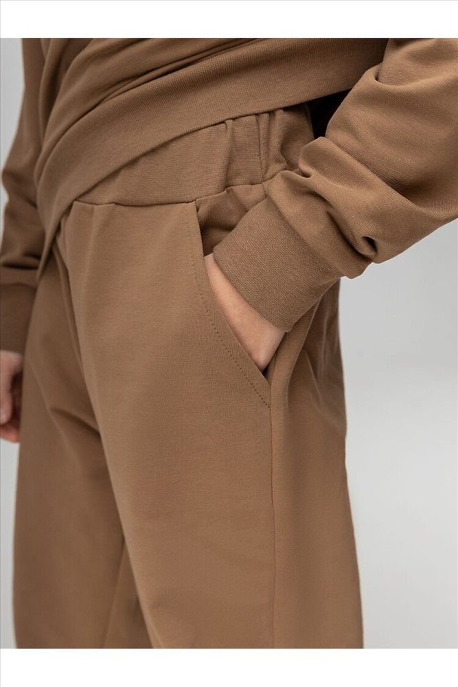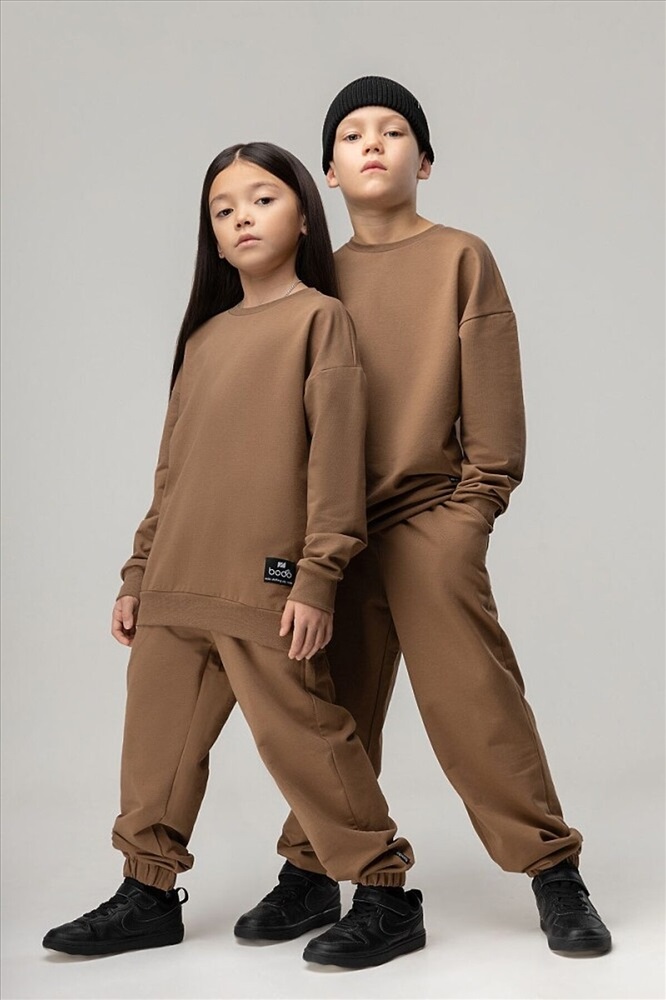 Костюм для детей дошкольного возраста. Толстовка без подкладки, прямого силуэта, с центральной бортовой застёжкой на кнопках, со спущенным плечом и втачными рукавами с притачной манжетой, по низу притачной пояс. Брюки прямые свободные на притачном поясе с внутренней резинкой. Низ брюк с цельнокроеной манжетой на резинке. Брюки с боковыми карманами. Внимание: в эти города продукция данного бренда не отгружается. Россия: Владивосток, Хабаровск, Махачкала. Казахстан: Павлодар, Семей, Кокшетау, Балхаш, Костанай, Усть-Каменогорск.
