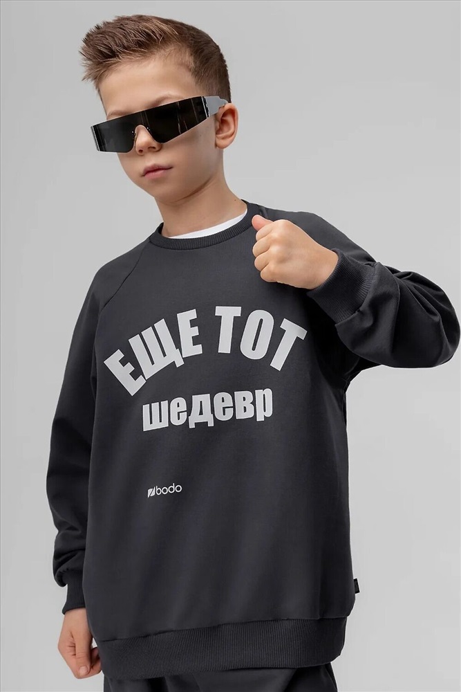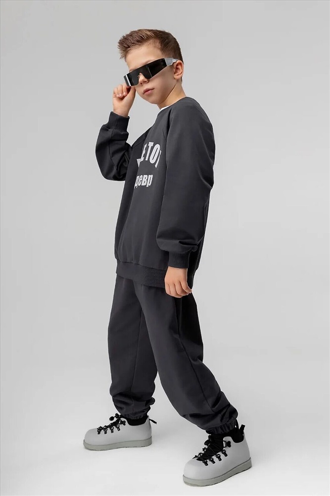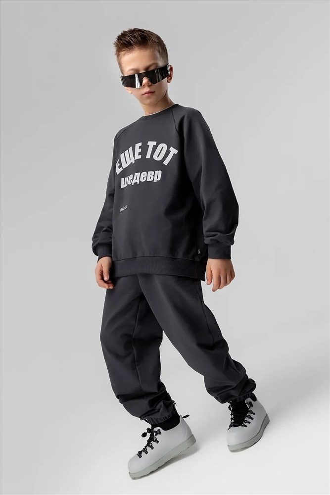 Костюм: свитшот и брюки. Свитшот без подкладки, прямого силуэта, на поясе по низу изделия. Рукава с манжетой, горловина округлой формы. Свободные брюки на поясе с внутренней резинкой. Низ брюк на резинке. Брюки с боковыми карманами. Внимание: в эти города продукция данного бренда не отгружается. Россия: Владивосток, Хабаровск, Махачкала. Казахстан: Павлодар, Семей, Кокшетау, Балхаш, Костанай, Усть-Каменогорск.