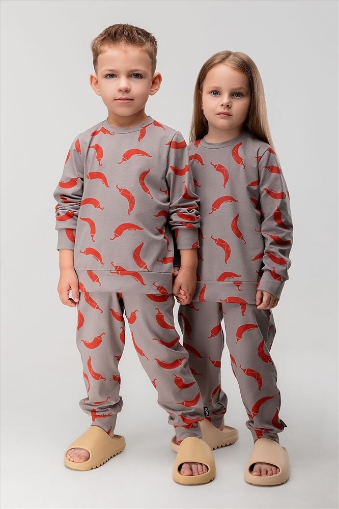 Костюм детский. Свитшот без застежек, округлый вырез горловины, полуприлегающий покрой, брюки-джоггеры, низ на манжетах.