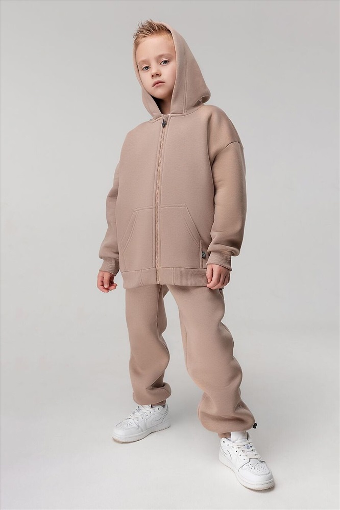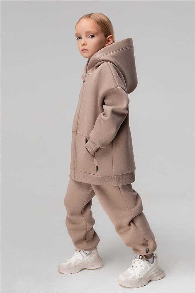 Костюм для детей дошкольного возраста. Толстовка прямого силуэта, с центральной бортовой застёжкой на тесьму молния, на притачном поясе по низу изделия, со спущенным плечом, с втачными рукавами с притачной манжетой, с втачным капюшоном. На полочке располагается карман «кенгуру».Брюки прямые свободные на притачном поясе с внутренней резинкой, на притачной манжете. Брюки с боковыми карманами. Без накладного кармана. Внимание: в эти города продукция данного бренда не отгружается. Россия: Владивосток, Хабаровск, Махачкала. Казахстан: Павлодар, Семей, Кокшетау, Балхаш, Костанай, Усть-Каменогорск.