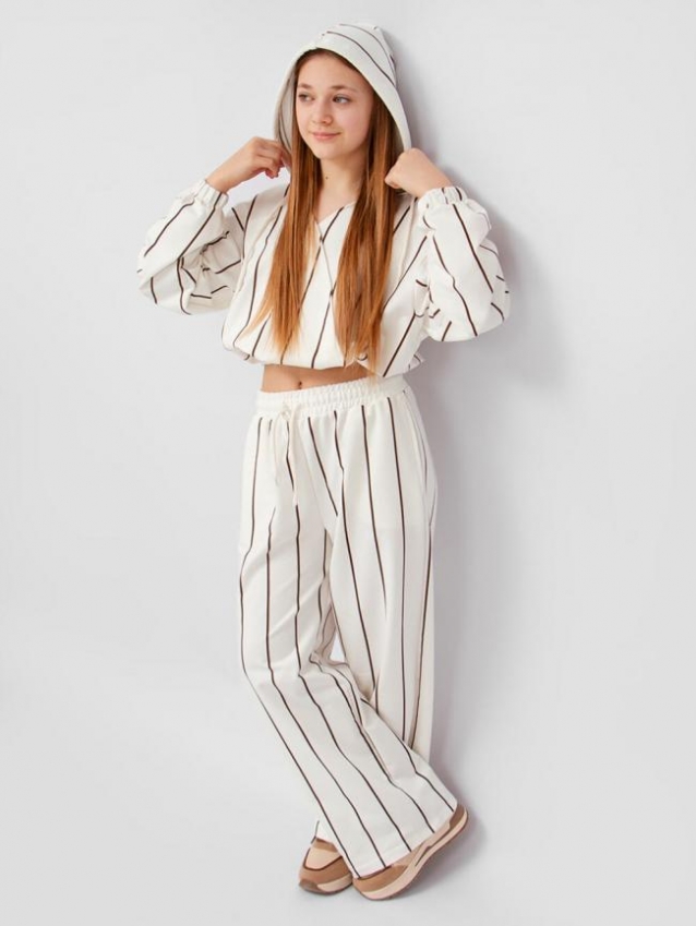 Костюм для девочки, коллекция сорт - шик. Джемпер укороченный с капюшоном. Брюки по талии на мягкой, широкой резинке. Плотный и эластичный трикотаж футер 2-х нитка хорошо пропускает воздух, не теряет формы. Размер 140 (рост 134-140 см) длина кофты 44 см, ОГ 84 см, длина рукава от горловины 58 см; длина брюк по боковому шву 86 см, по-внутреннему 60 см, ОТ 64 см, ОБ 84 см. Размер 146 (рост 140-146 см) длина кофты 44 см, ОГ 86 см, длина рукава от горловины 59 см; длина брюк по бок. шву 88 см, по внутр. 62 см, ОТ 66 см, ОБ 86 см. Размер 152 (рост 146-152 см) длина кофты 44 см, ОГ 88 см, длина рукава от горловины 63 см; длина брюк по бок.шву 90 см, по внутр. 64 см, ОТ 68 см, ОБ 88 см. Размер 158 (рост 152-158 см) длина кофты 46 см, ОГ 92 см, длина рукава от горловины 64 см; длина брюк по бок.шву 92 см, по внутр. 66 см, ОТ 70 см, ОБ 90 см. Размер 164 (рост 158-164 см) длина кофты 46 см, ОГ 94 см, длина рукава от горловины 65 см; длина брюк по бок.шву 94 см, по внутр. 68 см, ОТ 72 см, ОБ 92 см.