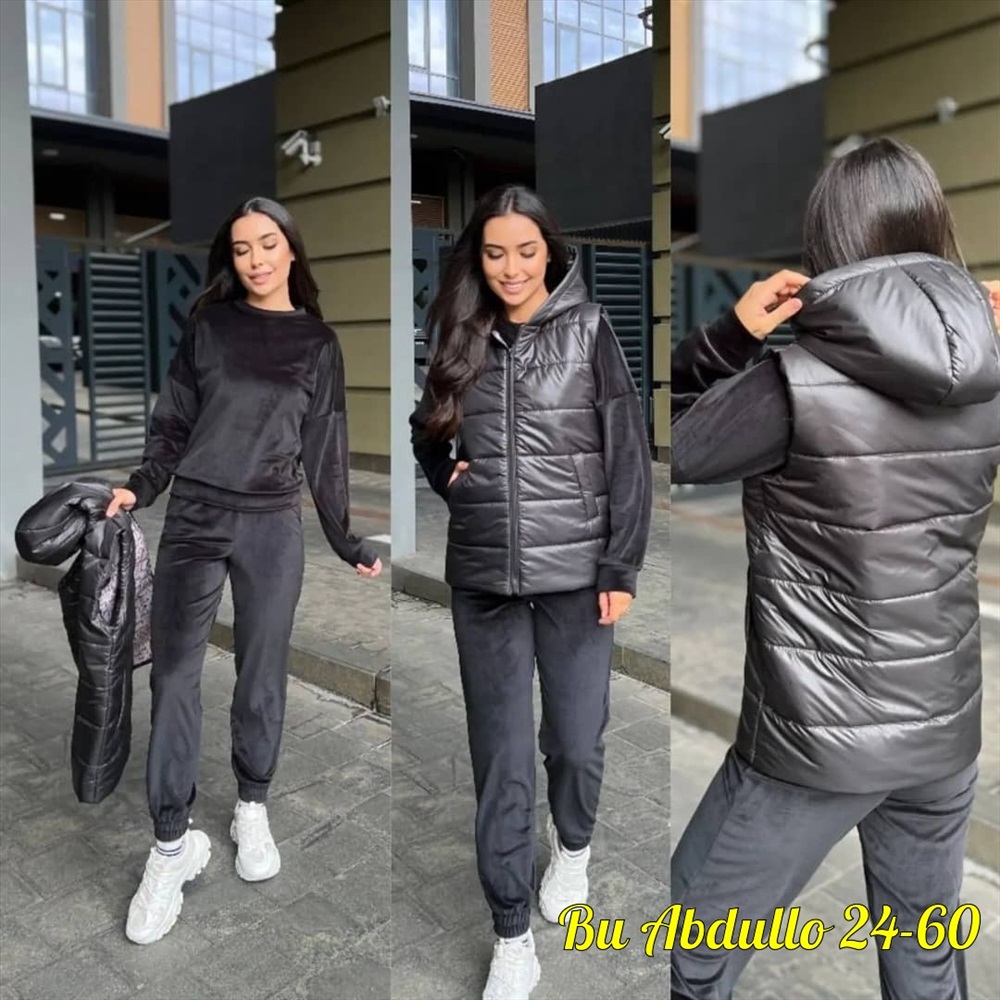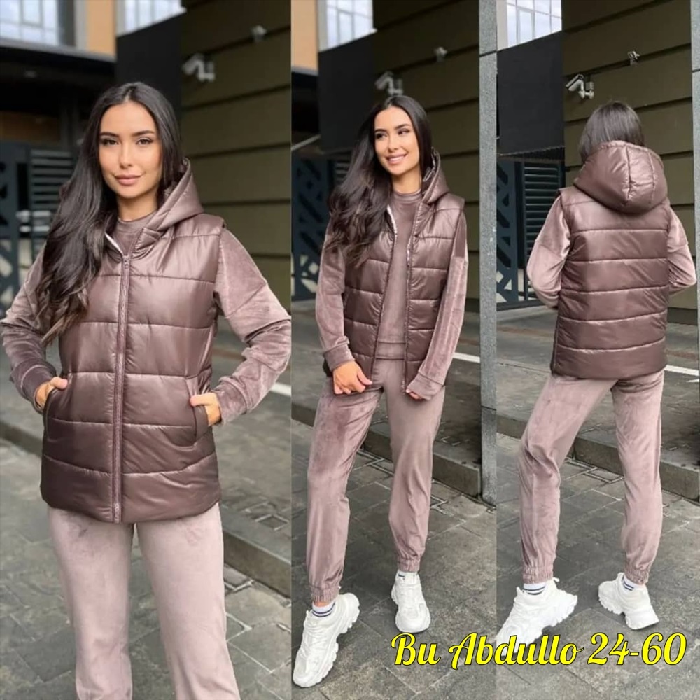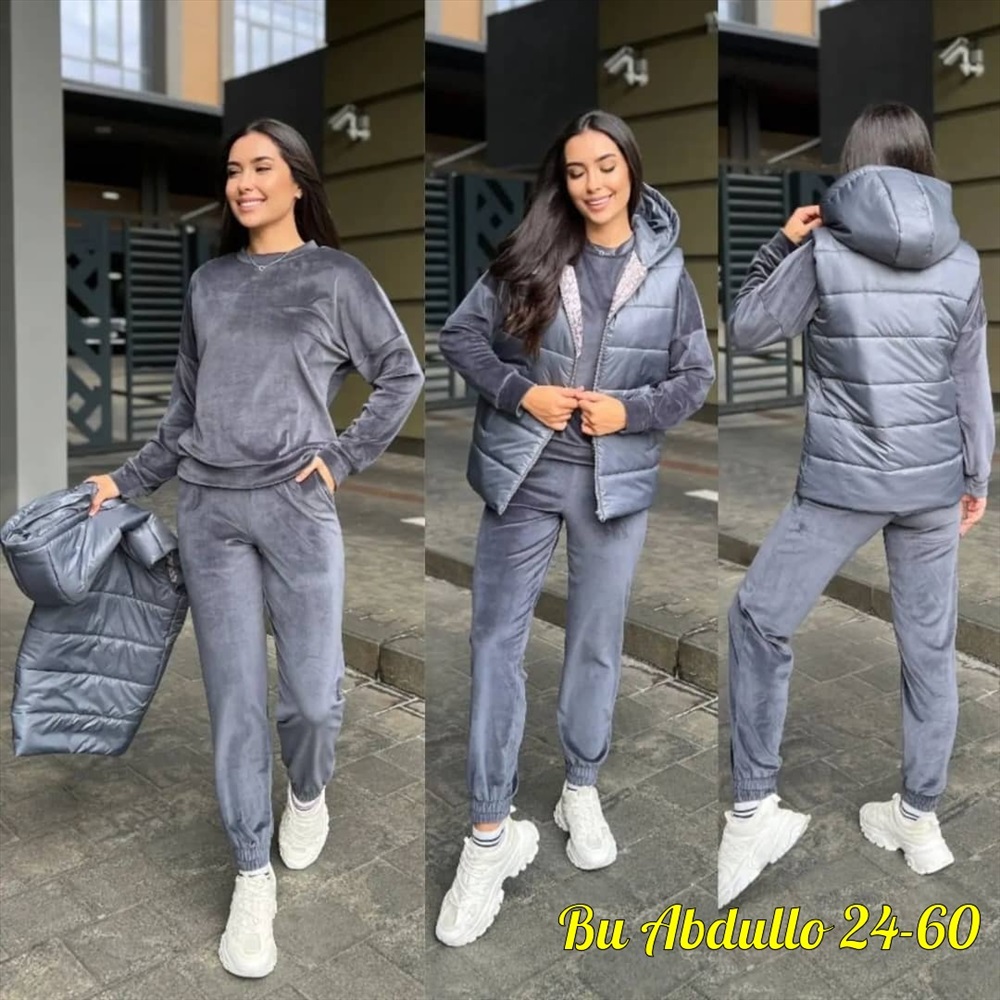новинки уютный спортивный костюм тройка из мягкого велюра с жилеткой удобная посадка жилет на молнии прямого кроя на подкладке Качество и пошив отличный Размеры 46-48-50-52-54-56