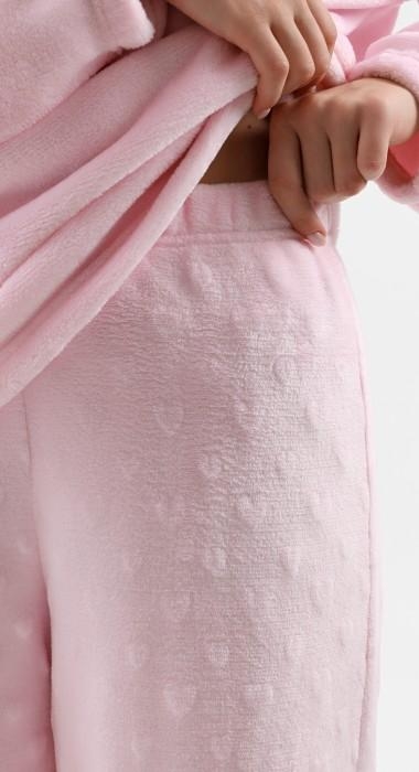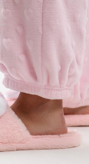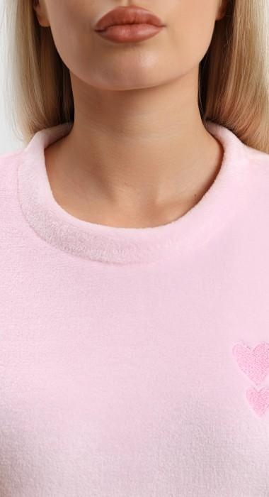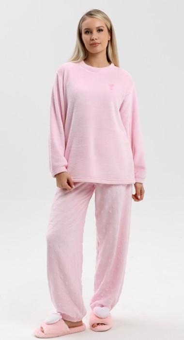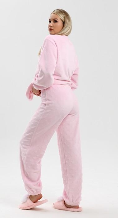 Костюм молодежный из трикотажного полотна «велсофт» в комбинации двух видов, состоящий из джемпера и брюк. Джемпер – из гладкого полотна, свободного покроя, с длинными втачными рукавами, нижние срезы которых обработаны эластичной тесьмой, горловиной овальной формы с втачной планкой. С левой стороны на полочке вышивка.