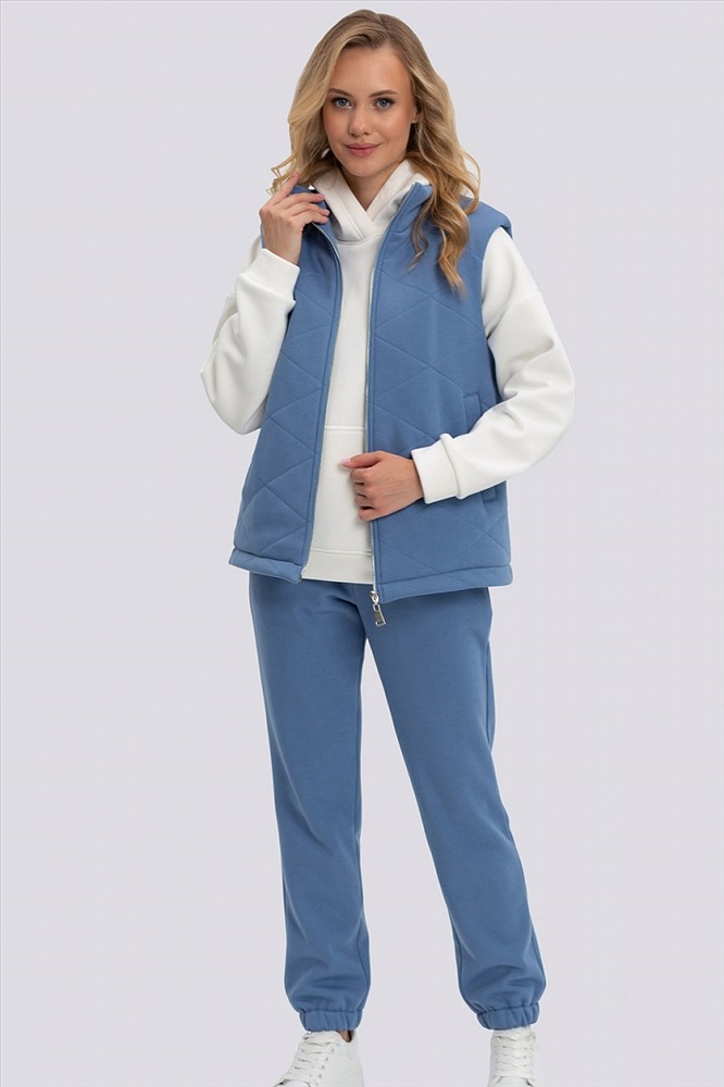 Теплый спортивный костюм женский с жилеткой на молнии - это комплект, представляющий собой идеальное сочетание стиля и функциональности для активного образа жизни и спокойных прогулок на свежем воздухе. Он создан для девушек и женщин, предпочитающих комфорт и тепло в прохладное и холодное время года. Теплый костюм выполнен из плотного, качественного футера с мягким начёсом внутри, приятным к телу. Это делает его идеальным выбором для весеннего, осеннего и зимнего времени года. Комплект включает в себя худи с капюшоном, брюки, стёганную утеплённую жилетку на молнии. На рукавах и брюках есть фиксирующие манжеты на резинке, которые позволяют сохранять тепло. Декоративные элементы в виде стёжки ромб придают костюму уникальный и запоминающийся вид. Костюм может легко сочетаться с вашей повседневной одеждой и спортивной обувью, создавая гармоничный и стильный образ. Он станет отличным дополнением к вашему гардеробу, сочетая в себе высокое качество, современный дизайн и максимальный комфорт. Трикотаж утепленный на флисе, состав: 75% хлопок, 20% полиэстер, 5 % спандекс. Жилетка на утеплителе термофин, плотностью 60г/м.
