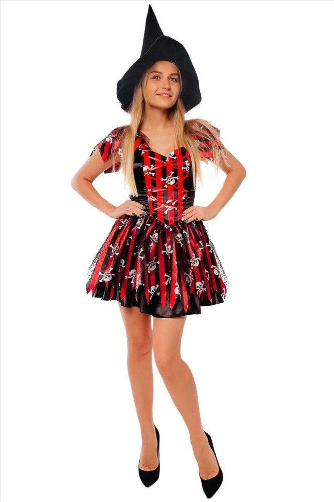 ID товара: 956818 Сезон: Демисезон Фасон: Полуприталенный Рукав: длинные Модель юбки/платья: Расклешенная Основная ткань: Полиэстер Стиль: Нарядный Страна бренда: Россия Страна производства: Россия Карнавальный костюм Ведьмочки взрослый на Хэллоуин, фотосессию или веселую вечеринку. Эффектный наряд дерзкой Ведьмочки подойдет любой девушке! В комплект входит платье и шляпа. Особенности: -Платье красно-черное полосатое с черепами -Рваный край рукавов и подола -Юбка короткая из нескольких слоев -Остроконечная черная шляпа с полями Комментарии к товару