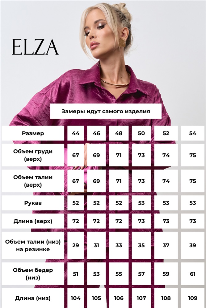 Длины: Рубашка 44-48р-72 см, 50-54р-73 см, рукав 44-48р- 52 см, 50-54р-53 см;