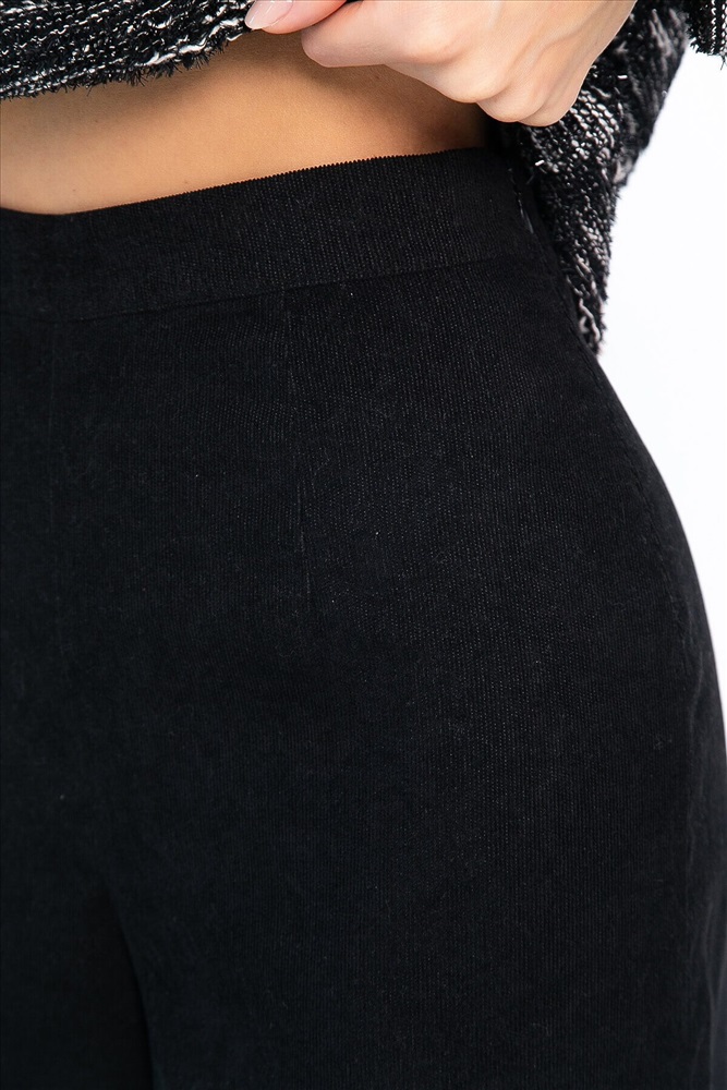 Состав : 65% полиэстер, 30% вискоза, 5% эластан Материал : трикотаж и вельвет Цвет : черный Принт : отсутствует Силуэт : свободный Карманы : отсутствуют Резинка в поясе : нет Вид застежки : у брюк молния, у верха пуговицы Декоративные элементы : отсутствуют