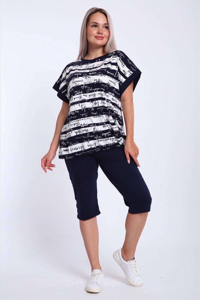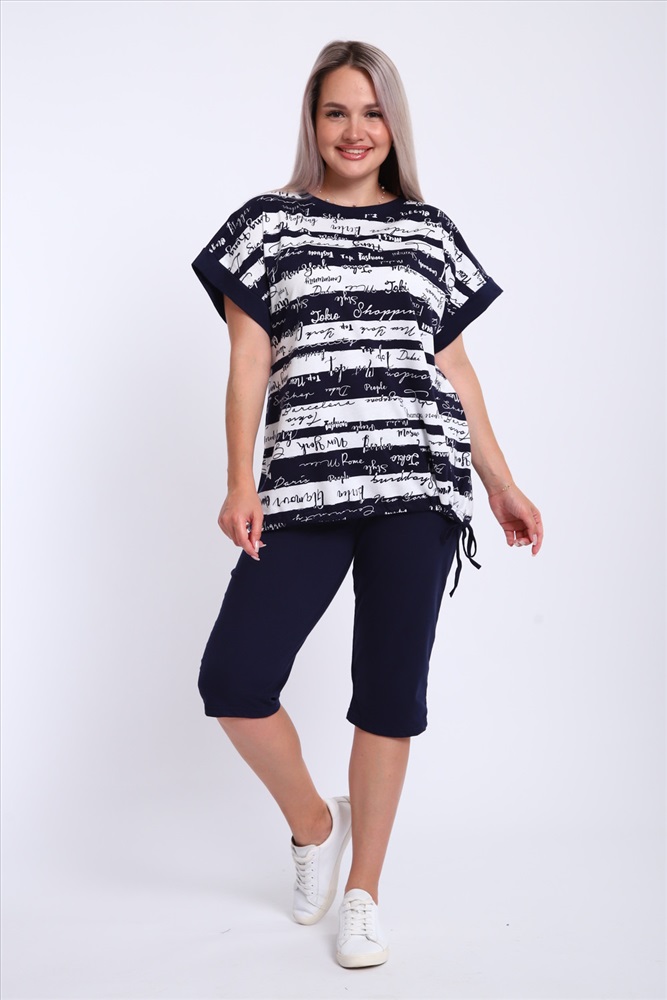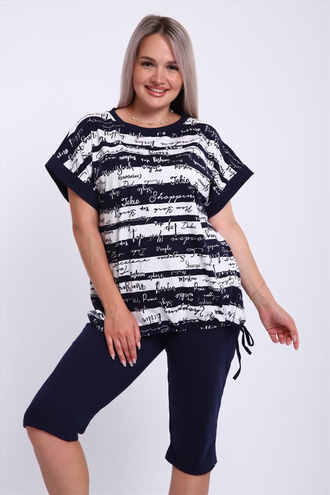 Состав: 100% хлопок Модель: Костюм женский 264 Тип товара: костюм с бриджами Материал: кулирка | кулирка Бренд: NIRMIN Карман: без карманов Назначение: для дома Особенности: на резинке Отделка: со шнурком Посадка: средняя посадка Рисунок: надпись | полоска Рукав: короткий рукав Сезонность: лето | осень | весна | зима Силуэт: прилегающий | свободный Стиль: домашний Воротник: без воротника Застежка: без застежки Костюм женский футболка и бриджи. Футболка свободного кроя, плечо спущенное на манжете. Низ футболки собирается на шнурок. Бриджи на резинке, без карманов Таблица размеров и весафутболка
