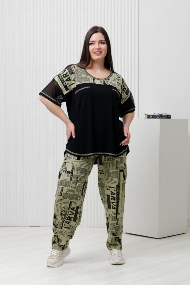Расцветки: Газета олива Ткань: Кулирка с лайкрой, Вискоза, Сетка Состав: 92% х/б , 8% лайкра; 95% х/б , 5% лайкра; 100% х/б Размеры: 48, 50, 52, 54, 56, 58, 60