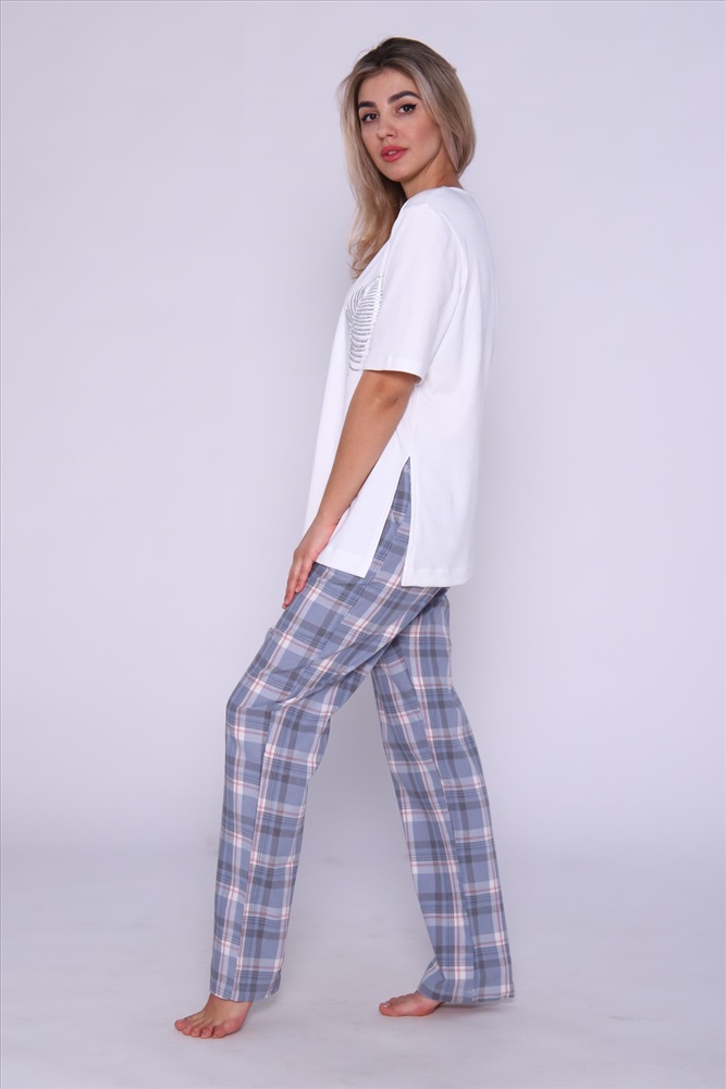 Состав: 100% хлопок Модель: Костюм женский с брюками и футболкой 375 Тип товара: костюм с брюками Материал: интерлок | интерлок Бренд: NINEL Карман: без карманов Назначение: для дома Особенности: на резинке Посадка: средняя посадка Рисунок: клетка Рукав: короткий рукав Сезонность: лето | осень | весна | зима Силуэт: прямой | свободный Стиль: домашний Воротник: без воротника Застежка: без застежки Домашний костюм с брюками и удлиненной футболкой с разрезами по бокам Идеальный вариант для домашних вечеров. Модель выполнена из 100% хлопка. Таблица размеров и весафутболка
