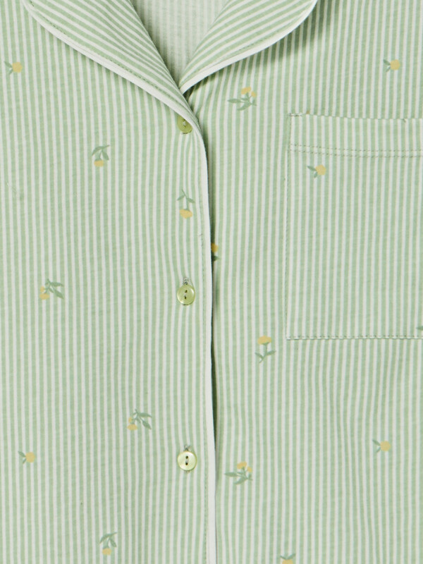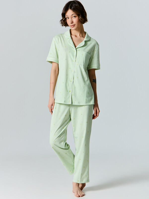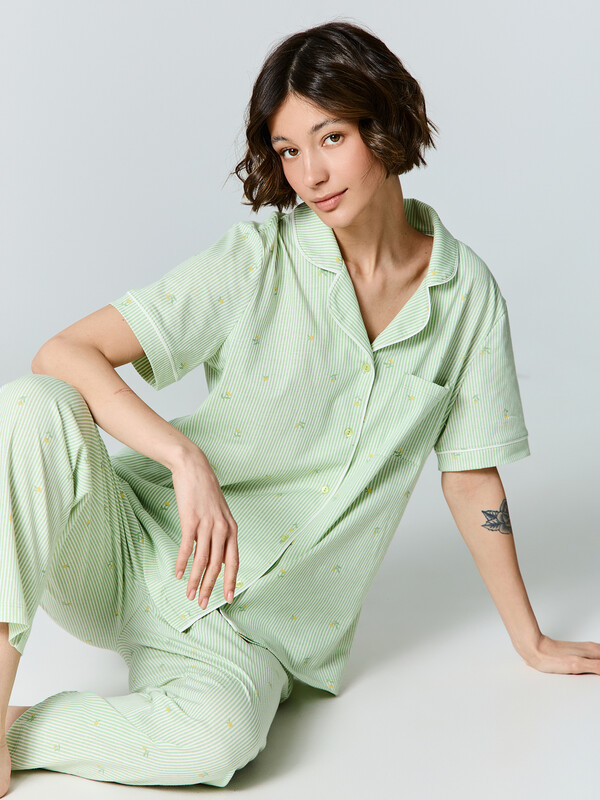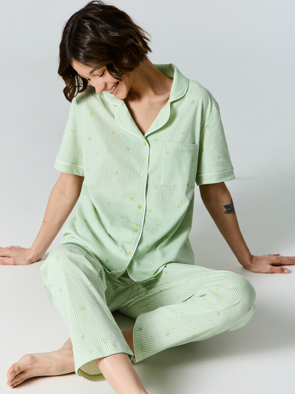Джемпер прямого силуэта дополнен накладным карманом и застежкой на пуговицы. Короткие рукава с аккуратными манжетами и кантом подчеркивают внимание к деталям. Пижама женская с бриджами на эластичном поясе обеспечивает полную свободу движений, не сковывая даже во время сна. Мягкая резинка внутри пояса бережно фиксирует изделие на талии. Комплект идеален для тех, кто ценит не только комфорт, но и стиль в домашней одежде. Пижама женская с бриджами в полоску легко сочетается с любым настроением, даря ощущение уюта и расслабленности после долгого дня. Качественная обработка швов и долговечные материалы делают этот набор практичным выбором для каждодневной носки. 100% хлопок Комментарии к товару