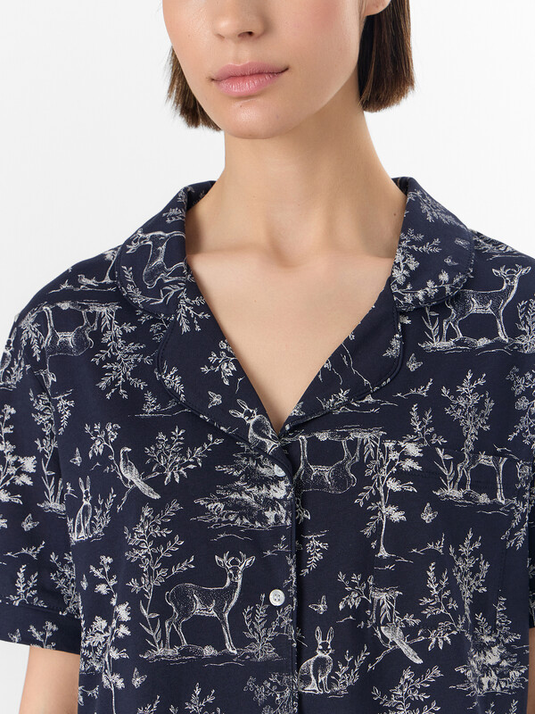 Жакет выполнен в расслабленном крое с бесшовной спинкой для особой мягкости. Элегантный отложной воротник с расширяющимися краями подчеркивает линию шеи и дополнен контрастной окантовкой. На груди расположен накладной карман. Короткие рукава с манжетами и центральная застежка на пуговицах завершают образ.