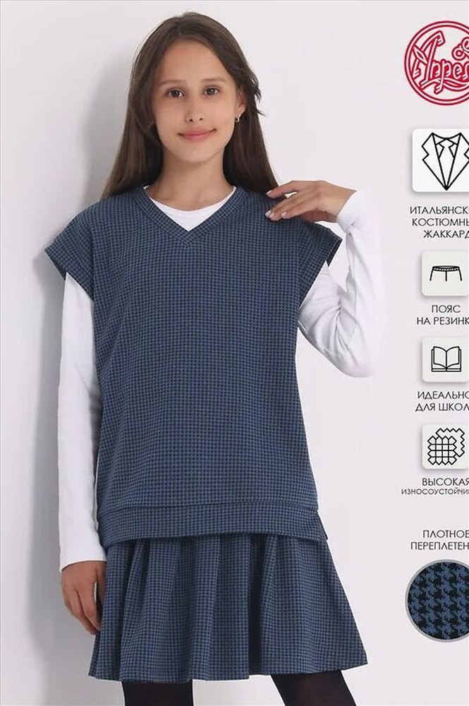 ID товара: 1033397 Акции: -16%, до 01.12.2025 Состав: Хлопок 55%, Полиэстер 42%, Лайкра 3% Сезон: Весна/Лето Длина: Средняя Фасон: Прямой Рукав: Без рукава Модель юбки/платья: Расклешенная Вырез горловины: V-образный Тип карманов: Без карманов Основная ткань: Хлопок Стиль: Деловой Страна бренда: Россия Страна производства: Россия Комплект для девочки из жилета и юбки выполнен из плотного полотна с рельефным рисунком, выполненным с применением жаккардового плетения. Жилет прямого кроя с v-образным вырезом горловины, без карманов и со спущенной линией плеча. Юбка трапециевидного силуэта, длиной до середины бедра, на комфортном эластичном поясе. Отличный вариант для школы и не только! Уход: только машинная стирка (руками не стирать!) при температуре 40 градусов, без предварительного замачивания. Материал: жаккард Комментарии к товару