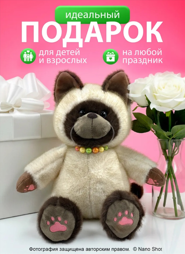 Котик-кошечка в сиамская стилистике — отличный выбор, когда хочется подарка с эмоциями: мягкая, милая, плюшевая игрушка, которая дарит тепло.
